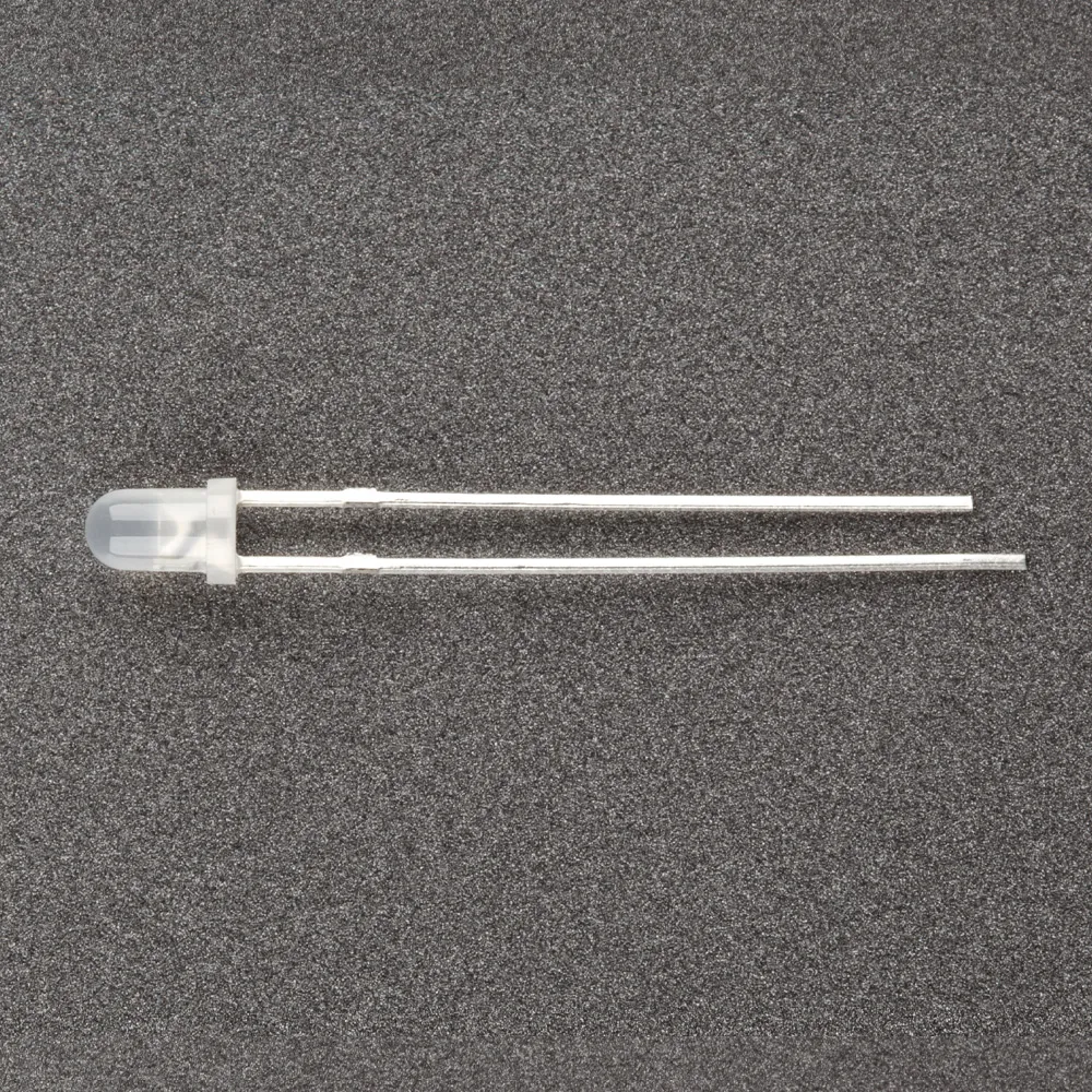 Поставка под заказ от 5000 шт. Выводной круглый светодиод, d=3 мм, белая матовая линза. Цвет свечения белый (6000-8000 К). Угол излучения 50-60°. Сила света Iv=1000-2500 мкд при If=20 мА. VF=2.9-3.5 В.