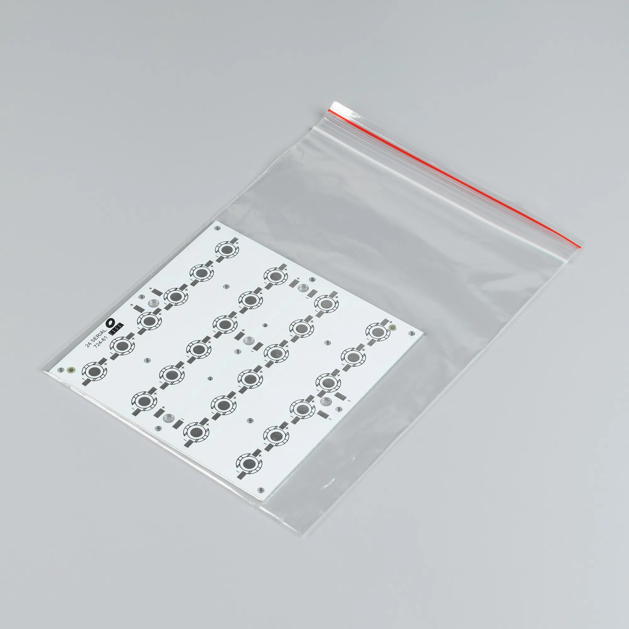 Алюминиевая плата. Размеры 120х120мм. Цвет белый. Для 24-ти (подключение 24S, последовательно) мощных светодиодов Emitter. Под блок линз MB Architect, 24B85D, 24B70, 24BST-E.