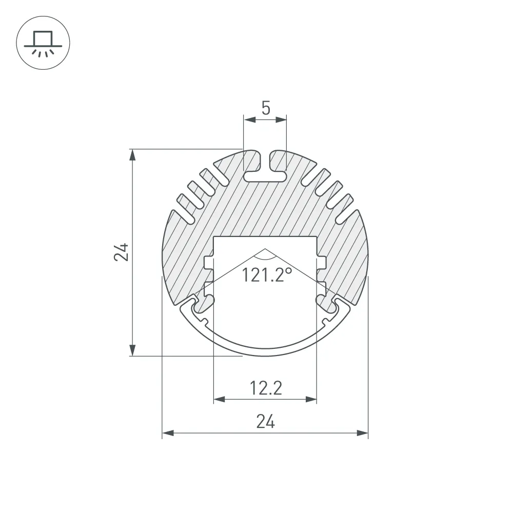 Поставка под заказ от 1 компл. Комплект с матовым рассеивающим выпуклым экраном. Алюминиевый анодированный круглый профиль для светодиодных лент и линеек. Массивное основание позволяет использовать с мощными светодиодными линейками. Габаритные размеры (L×W×H): 2000x24x24 мм. Ширина площадки для ленты 12,2 мм. Аксессуары приобретаются отдельно. Цена за комплект. Минимальный заказ 1 комплект.
