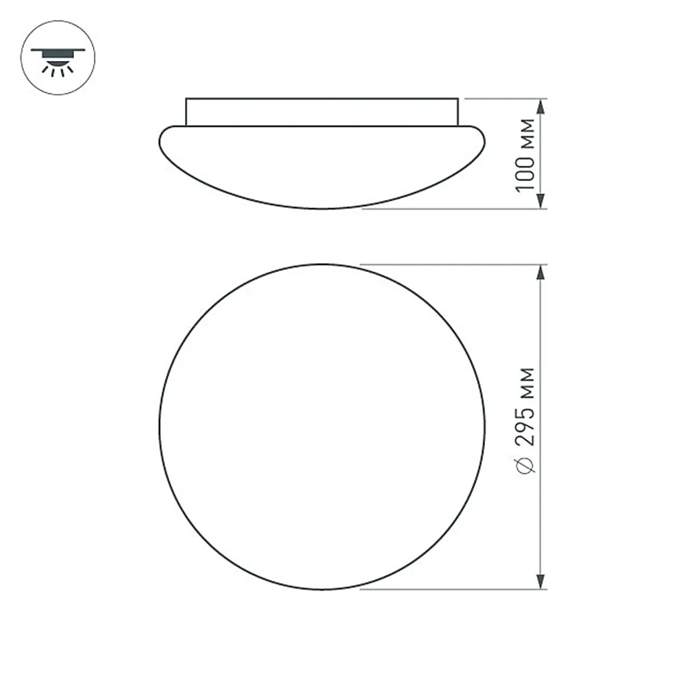 Накладной светильник 16Вт / ТЕПЛЫЙ 3000K / 1100лм / 120°. Размер Ф295 x 100мм. Пластиковый объёмный молочный рассеиватель. Питание от сети 220VAC. Энергосберегающее освещение для квартир, подъездов, домов.