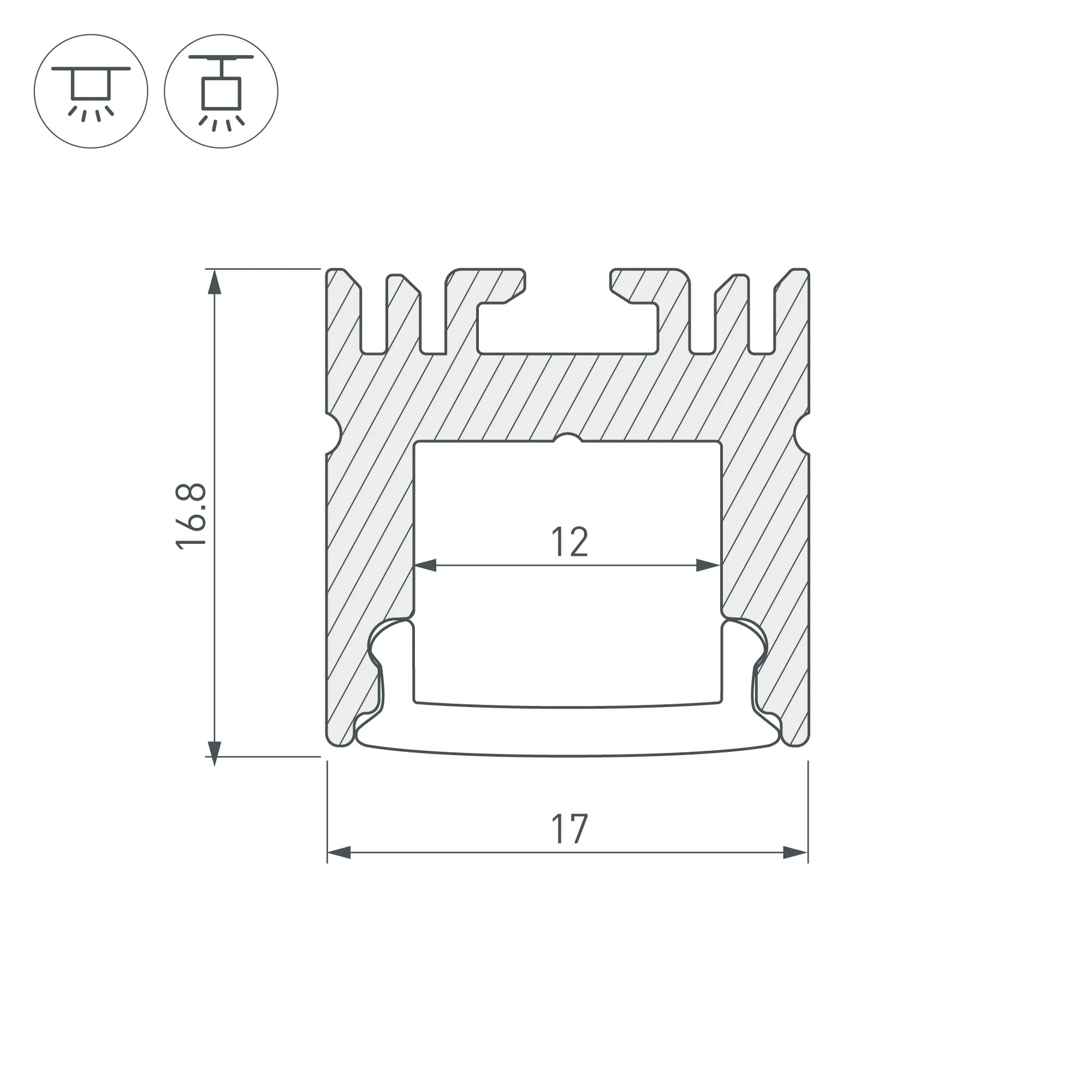 Алюминиевый анодированный подвесной профиль для светодиодных лент и линеек. Габаритные размеры (L×W×H): 2000x17x16,8 мм. Ширина площадки для ленты 12 мм. Экраны, заглушки и другие аксессуары приобретаются отдельно. Цена за 1 метр.