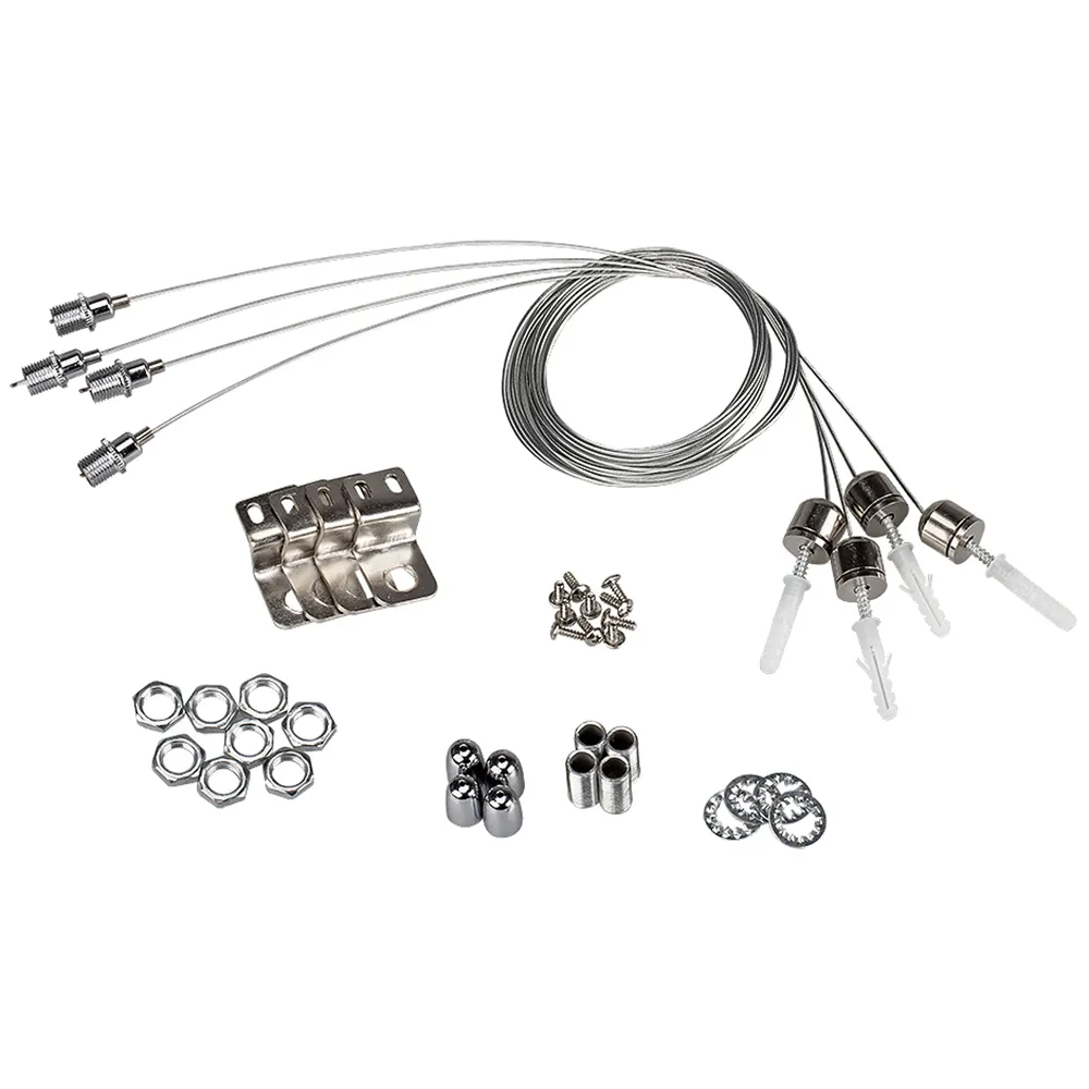 Набор для установки панелей 300х300, 600х600, 300х600. В комплекте 4 тросика + 4 держателя, винты, уши. Подходит для подвешивания и крепления к потолку. Длина тросов 1,5м.