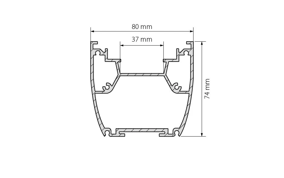 Новая модель! Стекло (экран) вставляется в паз. Алюминиевый анодированный корпус до 80Вт/м для изготовления прожекторов и светильников, с отсеком для блока питания,для лент и линеек шириной до 37мм. Заглушки и крепления (под DIN-рейку) поставляются отдельно. Размер 80х74х2000мм. Цена за 1м.