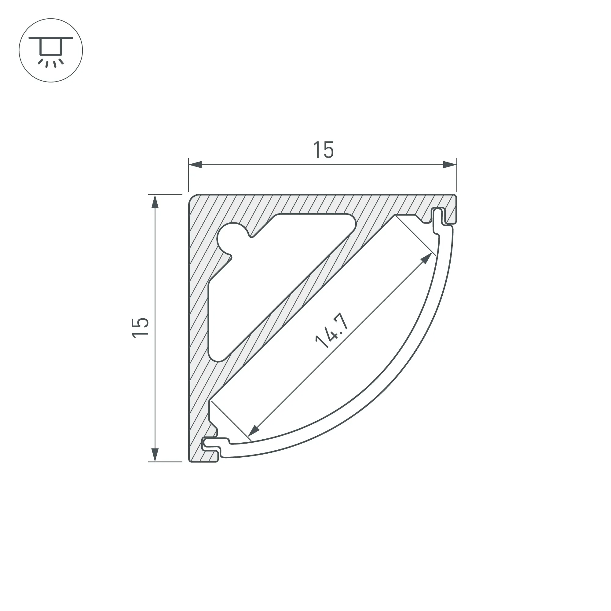 Алюминиевый анодированный угловой профиль для светодиодных лент и линеек. Габаритные размеры (L×W×H): 2000x15x15 мм. Ширина площадки для ленты 14,7 мм. Экраны, заглушки и другие аксессуары приобретаются отдельно. Цена за 1 метр.