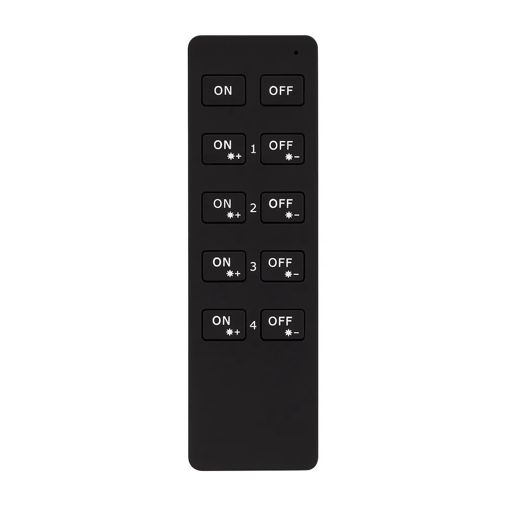 Кнопочный радиопульт 2.4 ГГц черного цвета для управления одноцветным (DIM) источником света. 4 зоны управления, управление яркостью с помощью кнопок. Питание 3VDC (CR2032). Габариты 135x40x11 мм. Изготовлен из пластика с покрытием Soft Touch. Управляет контроллерами и панелями серии SMART (поставляются отдельно). Настенные держатели приобретаются отдельно (см. аксессуары).