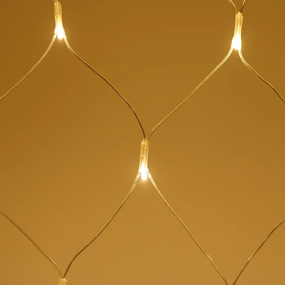 Светодиодная сеть Home. 1500x1500 (длина 1500 мм, высота 1500 мм). Цвет свечения ТЕПЛЫЙ БЕЛЫЙ (3000 К). 150 светодиодов размером 5 мм со статическим и 8 динамическими эффектами свечения с резким световым рисунком (прозрачная вогнутая линза). Провод прозрачный, ПВХ. Питание 230 В, Мощность 15 Вт, защита IP20, применение в помещении. Аксессуары для подключения и выбора режима свечения в комплекте.