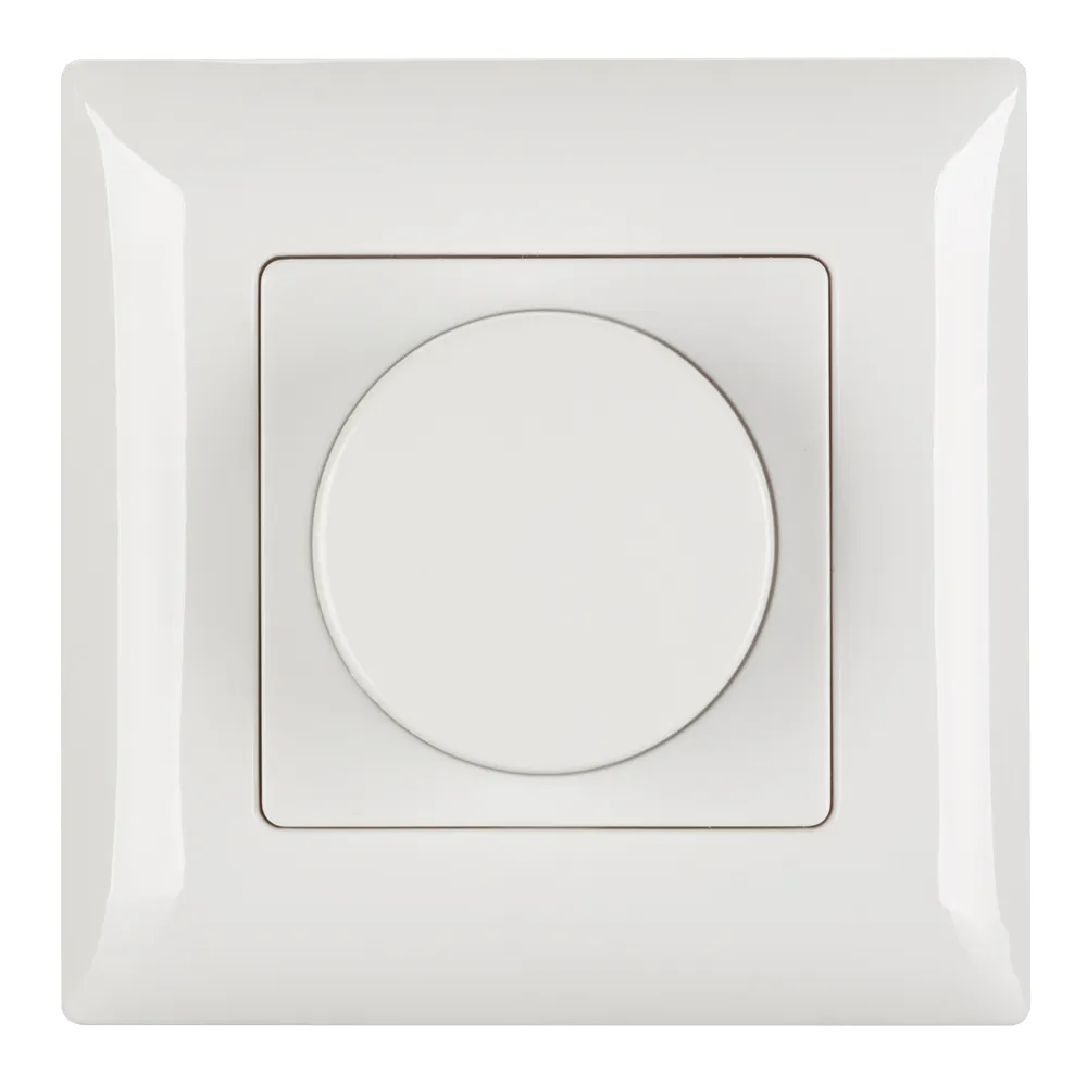 Накладная роторная панель 2.4 ГГц, цвет белый. Материал - пластик. Для управления одноцветными источниками света (ШИМ). Управление яркостью с помощью роторного вращателя. Питание/рабочее напряжение 3VDC от батарейки CR2032. Габариты 86х86х23 мм. Панель совместима с диммерами серии SMART.