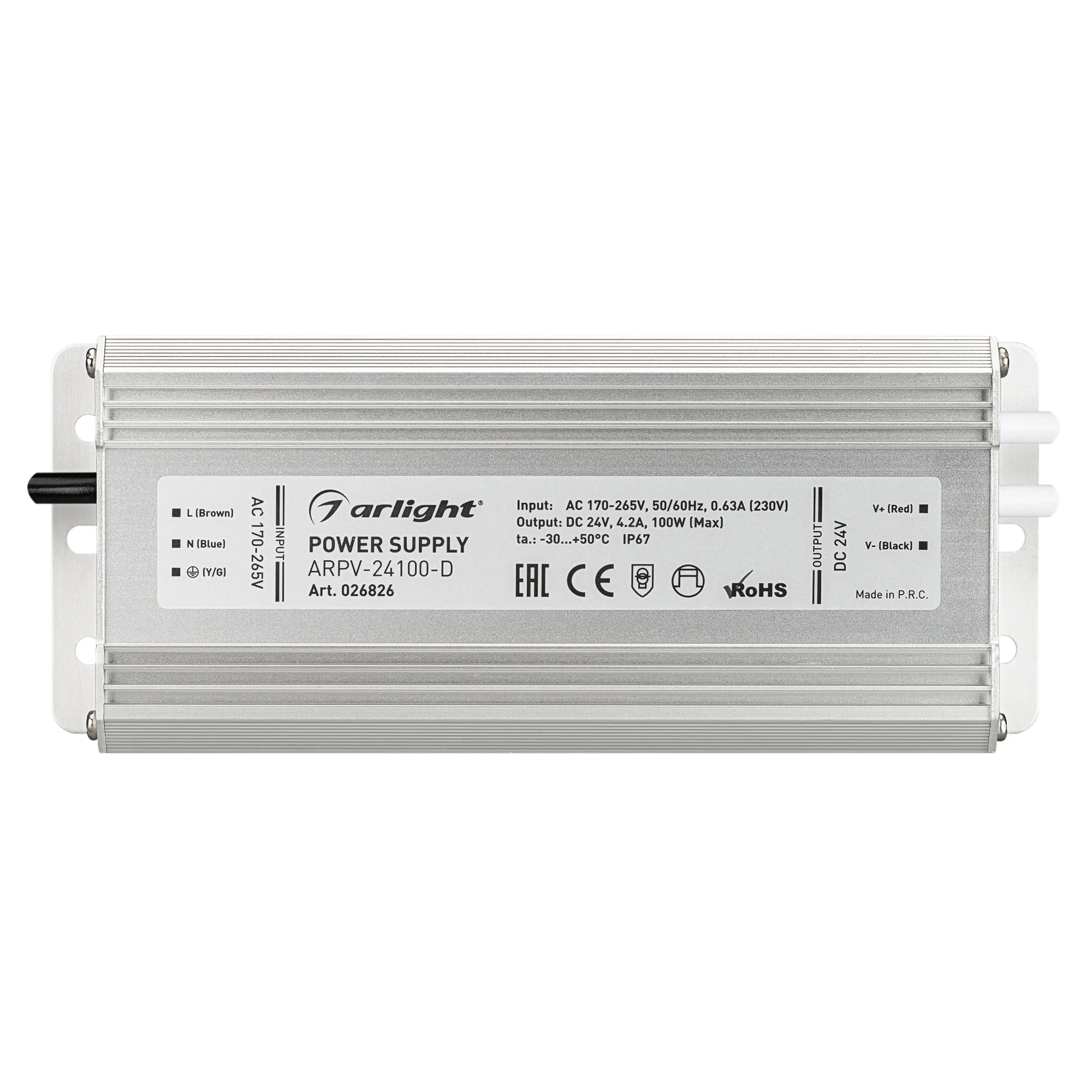 В магазине Arled Market Вы можете купить "Блок питания ARPV-24100-D (24V, 4.2A, 100W) (Arlight, IP67 Металл, 3 года)"