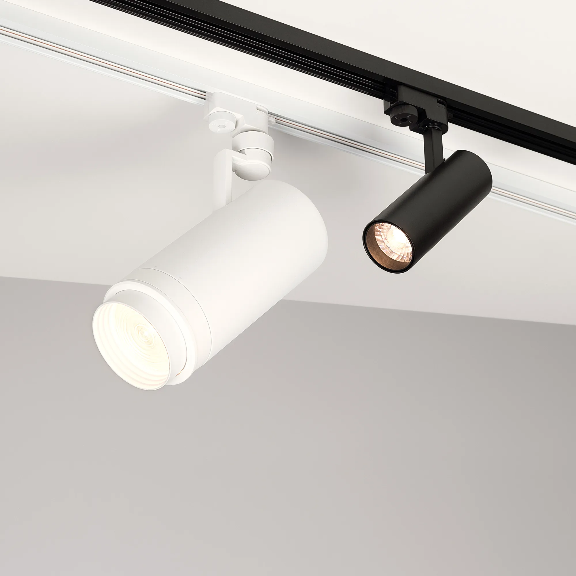 Светильник для треков/шин 2 провода. Мощность 10 Вт, св. поток 860-1060 лм, 90 лм/Вт, теплый 3000 K, CRI>90, угол 24°, напряжение питания 230 В. Черный круглый корпус из алюминия, материал линзы PMMA , степень защиты IP20. Размер: диаметр 55 мм, высота 145 мм. Монтаж на трек 1-фазный. Драйвер встроенный 27-38 В, 260 мА., пульсация <1%.