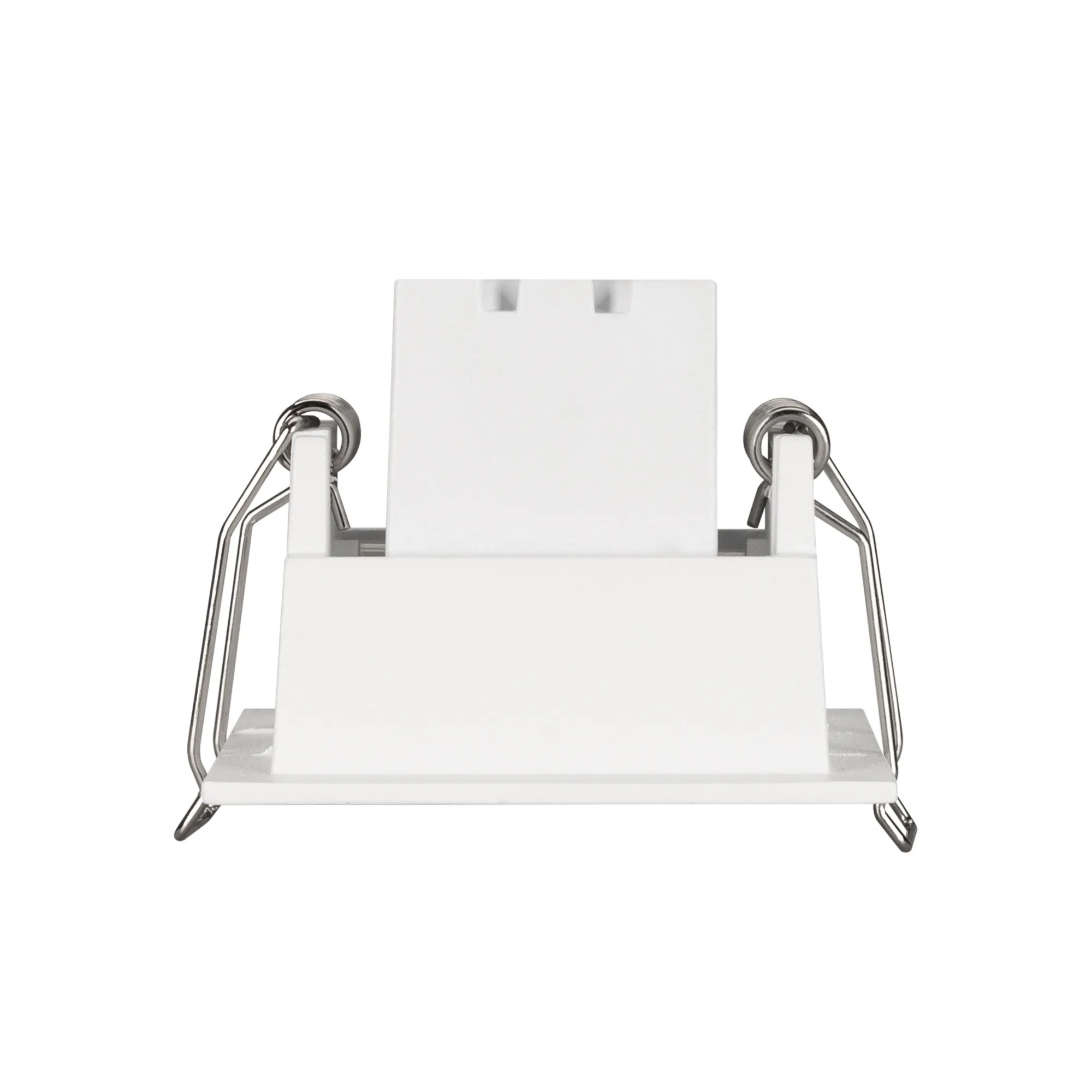 Встраиваемый поворотный светильник. Мощность 3 Вт, св. поток 180 лм, 60 лм/Вт, дневной 4000 K, CRI>98, угол 30°, напряжение питания 230 В. Белый прямоугольный корпус из алюминия, экран PMMA, степень защиты IP20. Размер: длина 67 мм, ширина 67 мм, высота 50 мм. Монтаж встраиваемый, установочное отверстие длина 60 мм, ширина 60 мм. Драйвер 3-12 В, 500 мА, пульсация <1%.