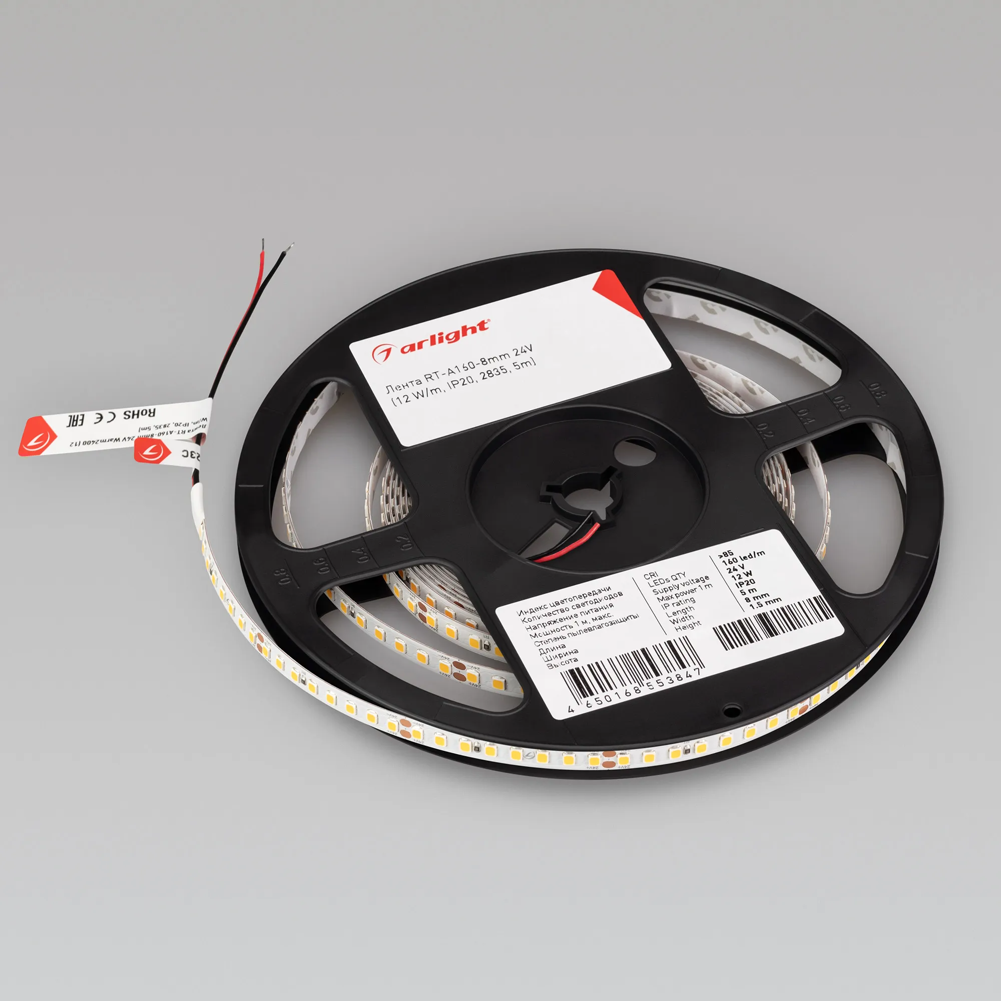 В магазине Arled Market Вы можете купить "Лента светодиодная RT-A160-8mm 24V Warm3500 (12 W/m, IP20, 2835, 5m) (Arlight, высок.эфф.150 лм/Вт)"