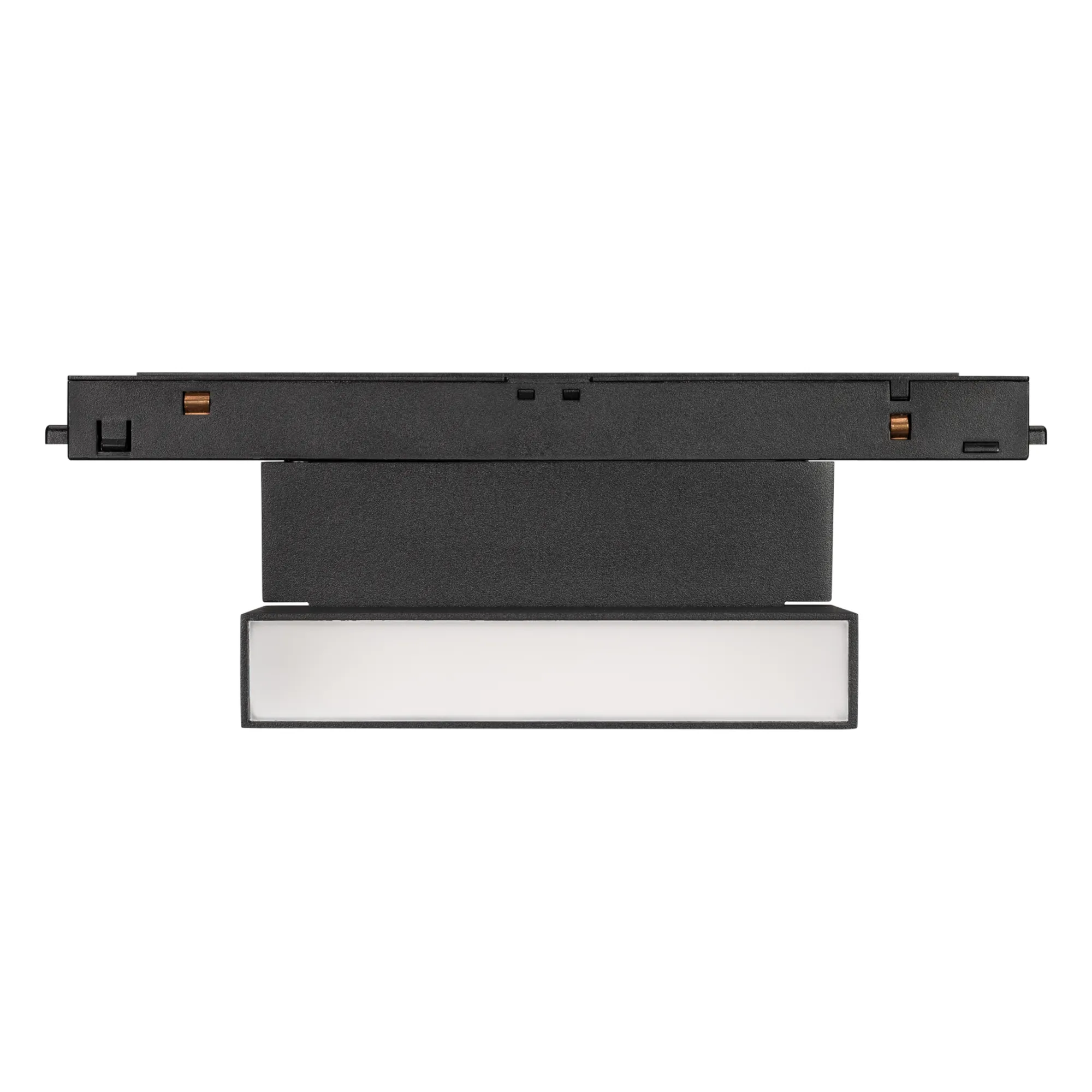 Светильник для магнитных треков MAG-ORIENT шириной 26 мм с управлением DALI. Мощность 6 Вт, св. поток 375 лм, 63 лм/Вт, дневной 4000 K, CRI>90, угол 80°, напряжение питания 48 В. Черный прямоугольный корпус из металл, экран поликарбонат, степень защиты IP20. Размер: длина 204 мм, ширина 23 мм, высота 99 мм. Монтаж на трек MAG-ORIENT, пульсация <1%.