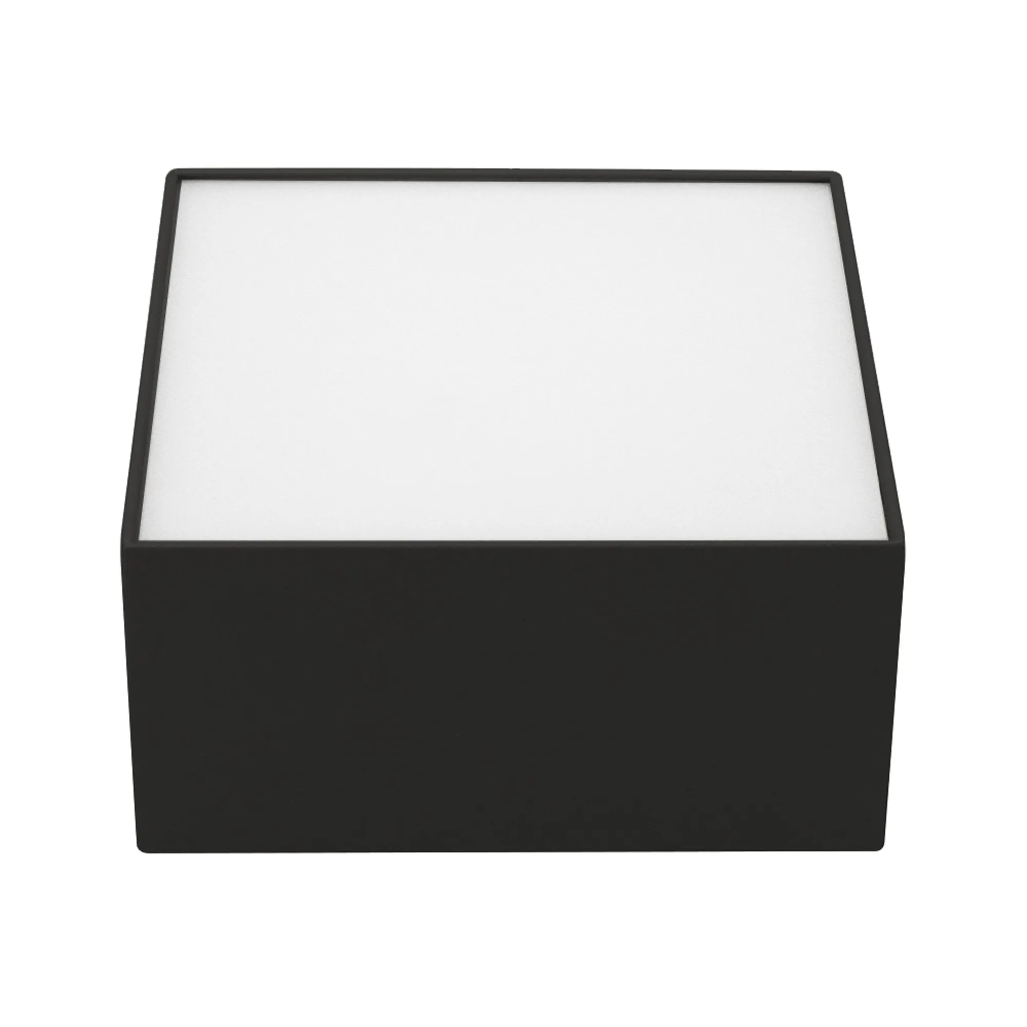 Накладной светильник. Мощность 13 Вт, св. поток 540-680 лм, 52 лм/Вт, теплый 3000 K, CRI>90, угол 120°, напряжение питания 230 В. Черный квадратный корпус из алюминия, экран PC, степень защиты IP40. Размер: длина 120 мм, ширина 120 мм, высота 59 мм. Монтаж накладной. Драйвер 20-40 В, 300 мА, пульсация <5%.