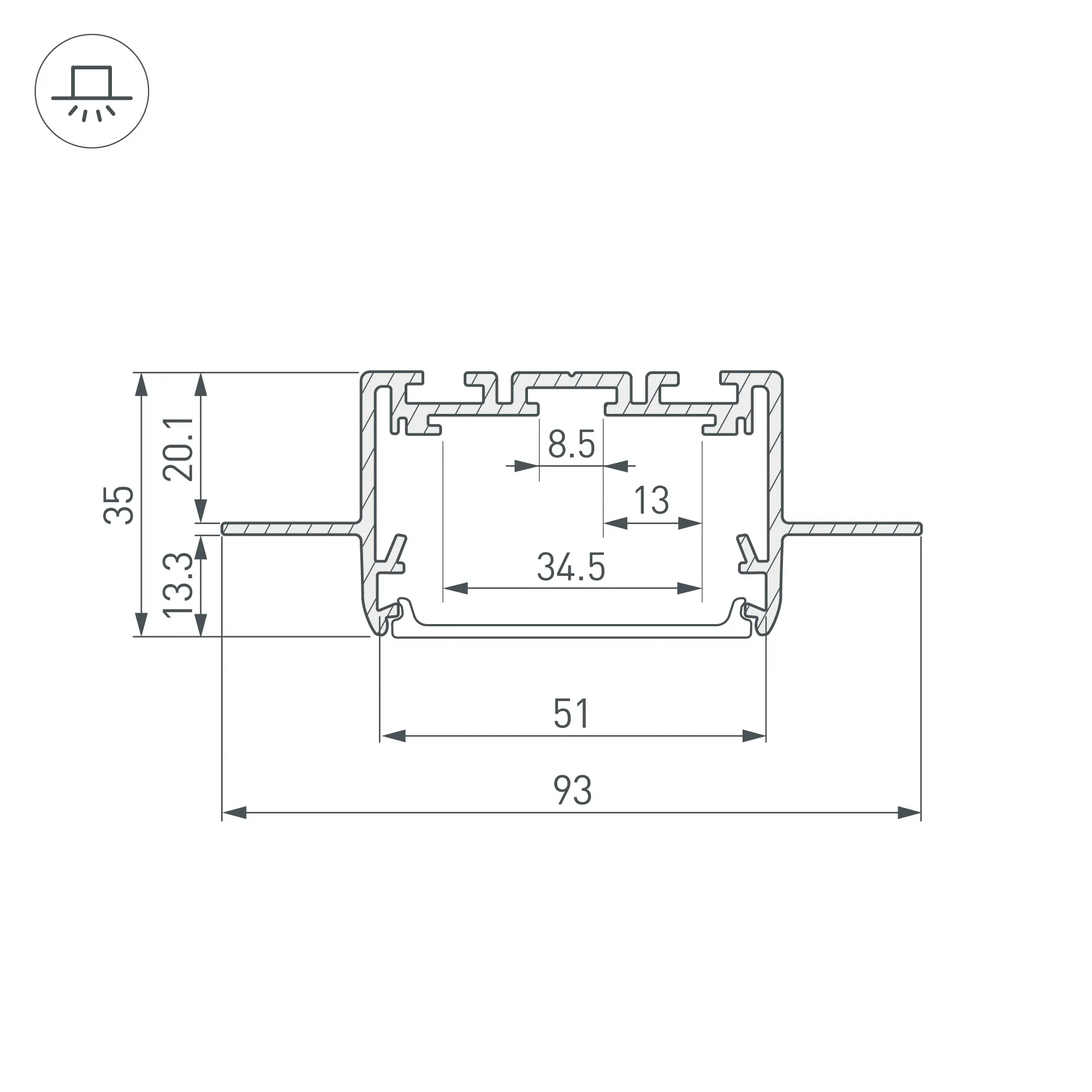 Алюминиевый профиль для встраивания в гипсокартон толщиной 12 мм. Для использования с гибким экраном SL-SEAMLESS (поставляется в рулонах). Габаритные размеры (L×W×H): 2500x93x35 мм, паз для установки 55 мм. Ширина площадки для ленты - 34,5 мм. Экраны, заглушки и другие аксессуары приобретаются отдельно. Цена за 2,5 метра.