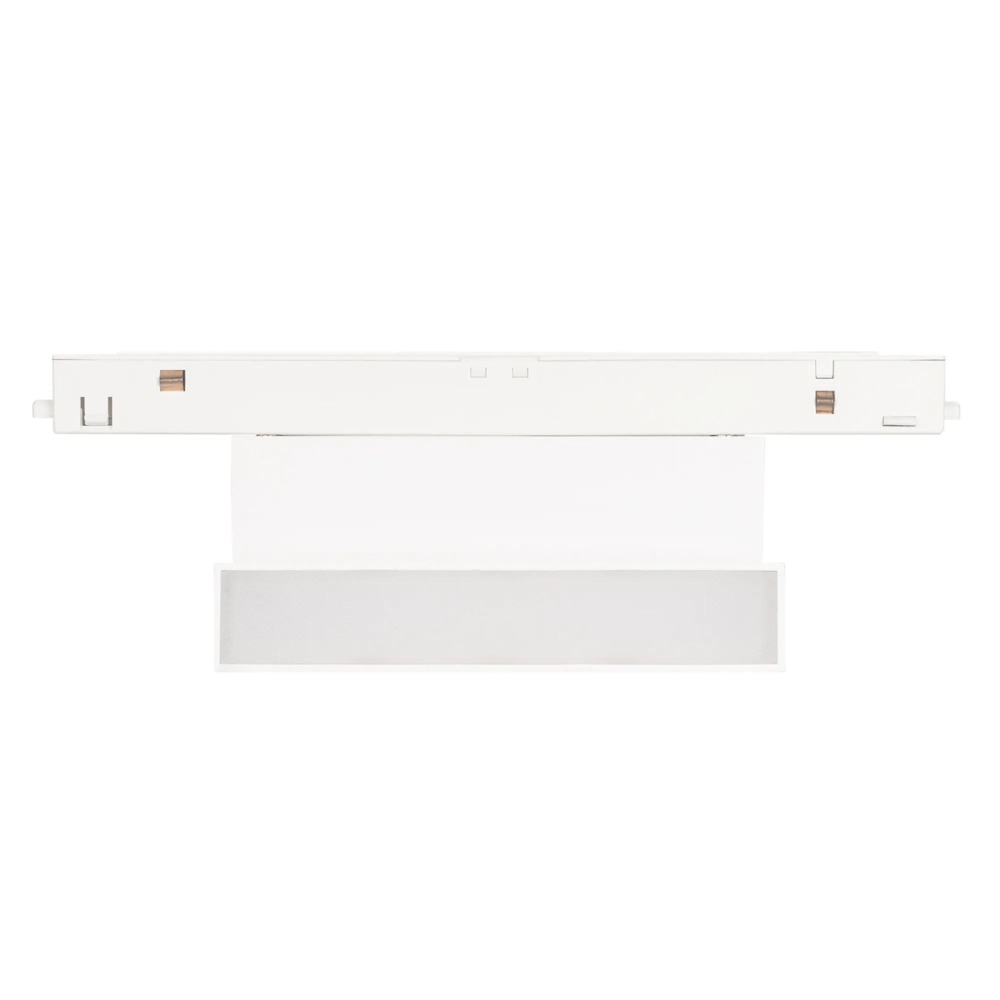 Светильник для магнитных треков MAG-ORIENT шириной 26мм. Мощность 6 Вт, св. поток 375 лм, 63 лм/Вт, дневной 4000 K, CRI>90, угол 80°, напряжение питания 48 В. Белый прямоугольный корпус из металл, экран поликарбонат, степень защиты IP20. Размер: длина 195 мм, ширина 23 мм, высота 107 мм. Монтаж на трек MAG-ORIENT, пульсация <1%.