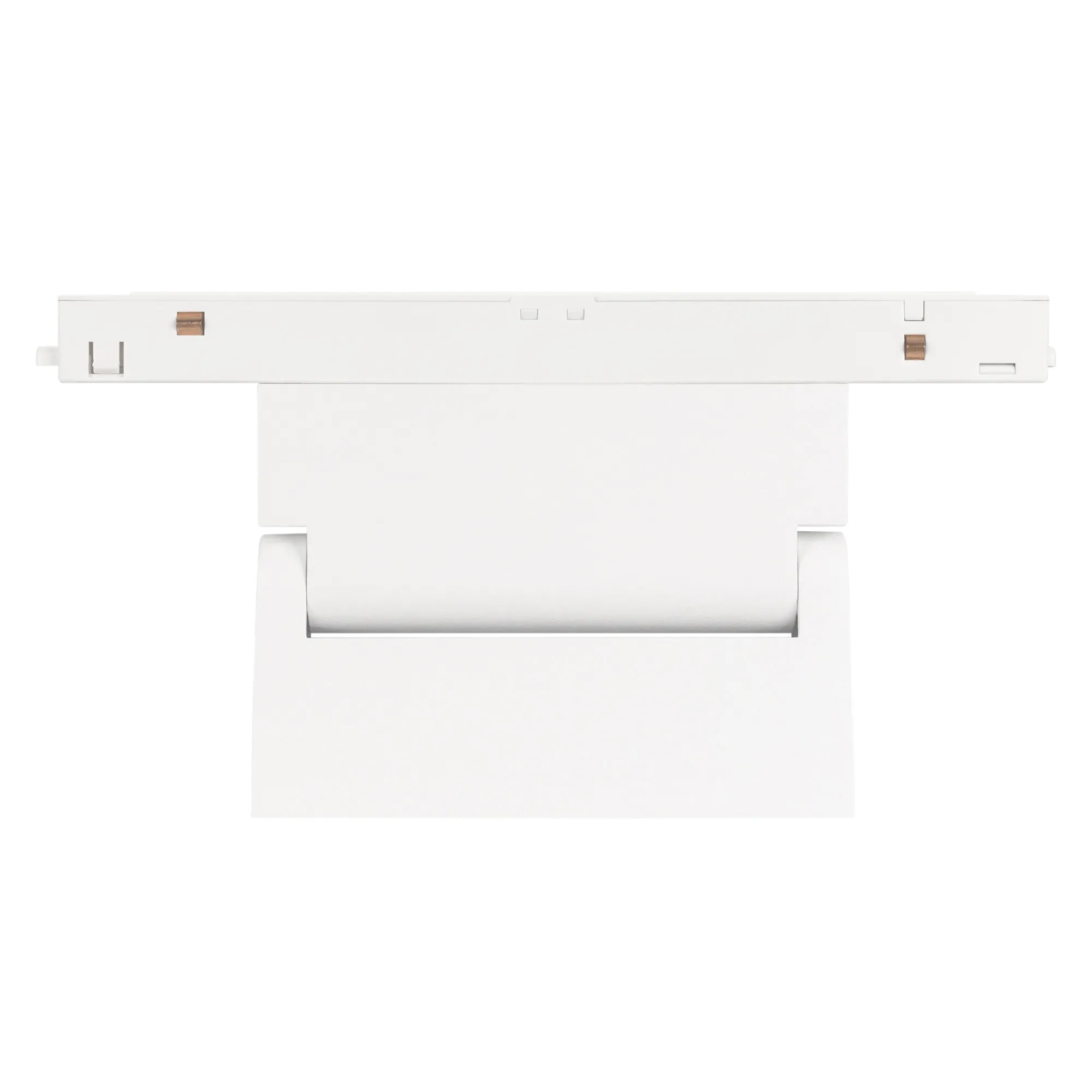 Светильник для магнитных треков MAG-ORIENT шириной 26 мм с управлением DALI. Мощность 6 Вт, св. поток 375 лм, 63 лм/Вт, дневной 4000 K, CRI>90, угол 80°, напряжение питания 48 В. Белый прямоугольный корпус из металл, экран поликарбонат, степень защиты IP20. Размер: длина 204 мм, ширина 23 мм, высота 99 мм. Монтаж на трек MAG-ORIENT, пульсация <1%.