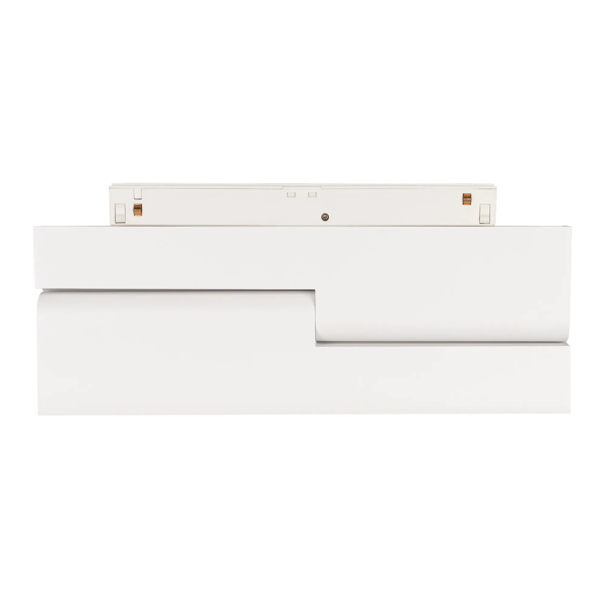 Светильник для магнитных треков MAG-ORIENT шириной 26 мм. Мощность 12 Вт, св. поток 750 лм, 60 лм/Вт, теплый 3000 K, CRI>90, угол 80°, напряжение питания 48 В. Белый прямоугольный корпус из металл, экран поликарбонат, степень защиты IP20. Размер: длина 232 мм, ширина 23 мм, высота 99 мм. Монтаж на трек MAG-ORIENT. Пульсация <1%.