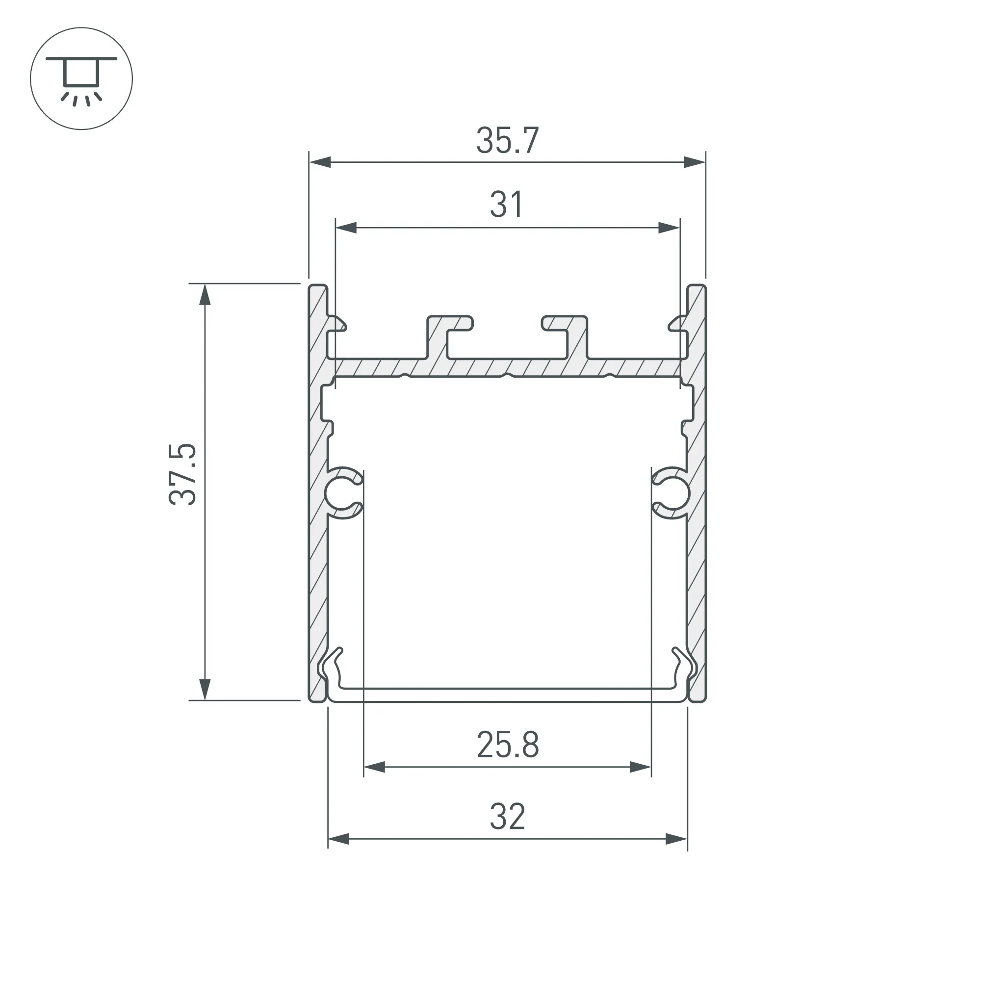 Алюминиевый анодированный профиль для светодиодных лент и линеек. Цвет - оливковый серый. Габаритные размеры (L×W×H): 2000x36x38 мм. Ширина площадки для ленты 31 мм. Экраны, заглушки и другие аксессуары приобретаются отдельно. Цена за 1 метр.