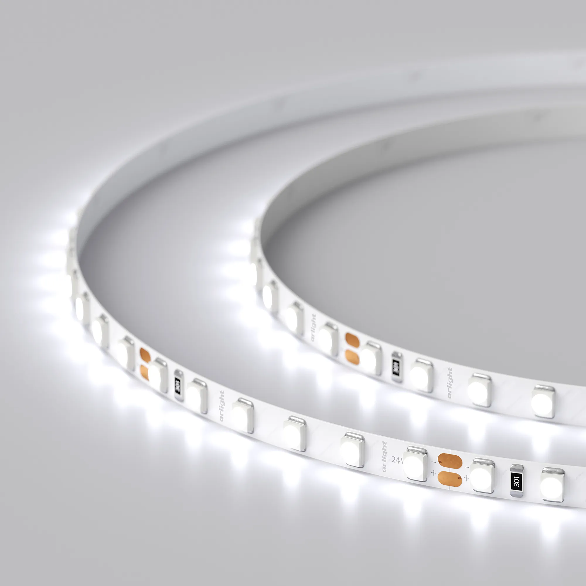 Лента светодиодная RT 2-5000 24V Cool 8K 5mm 2x (3528, 600 LED, LUX) (Arlight, 9.6 Вт/м, IP20)