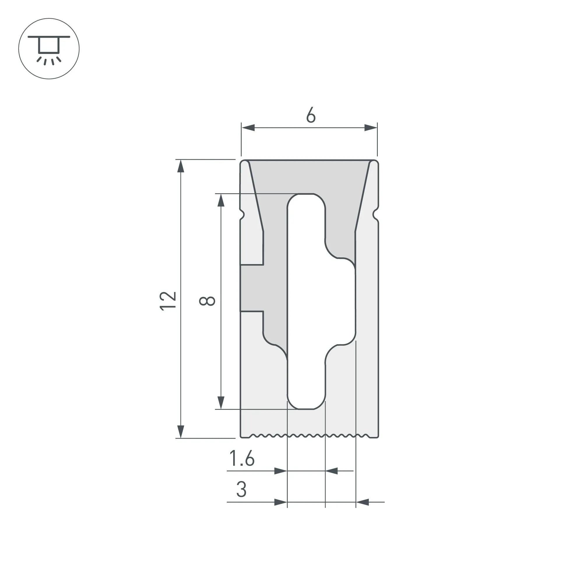 Цельнолитой силиконовый гибкий профиль, белый матовый. Габаритные размеры 5000×6×12 мм.Горизонтальный изгиб SIDE, минимальный радиус изгиба 30 мм. Для установки во влажных помещениях необходима герметизация при помощи двухкомпонентного эпоксидного герметика. Класс пылевлагозащиты – IP65 (при соблюдении технологии герметизации). Для лент шириной от 6 до 8 мм, высотой до 2,9 мм и мощностью до 10 Вт/м. При подборе ленты необходимо учитывать, что втяжка лент COB, герметичных лент и лент с наличием силиконового слоя может быть затруднена. Угол излучения 120°. Поставляется в катушках по 5 м. Цена за 1 м.
