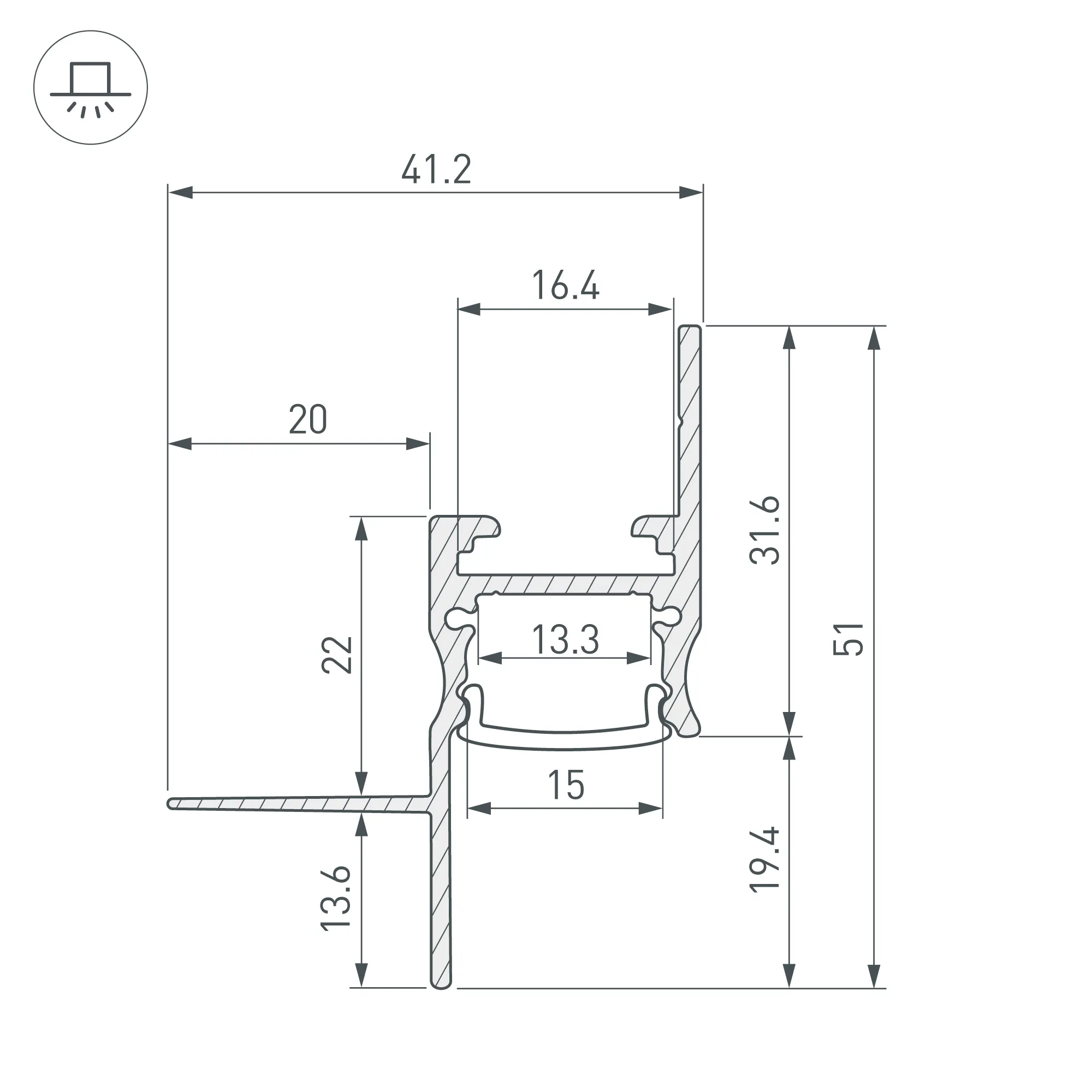 Алюминиевый встраиваемый профиль для светодиодных лент и линеек. Цвет - черный RAL9005 (порошковая окраска). Габаритные размеры (L×W×H): 2000х41х51 мм. Ширина площадки для ленты 13,3 мм. Экраны, заглушки и другие аксессуары приобретаются отдельно. Цена за 1 метр.