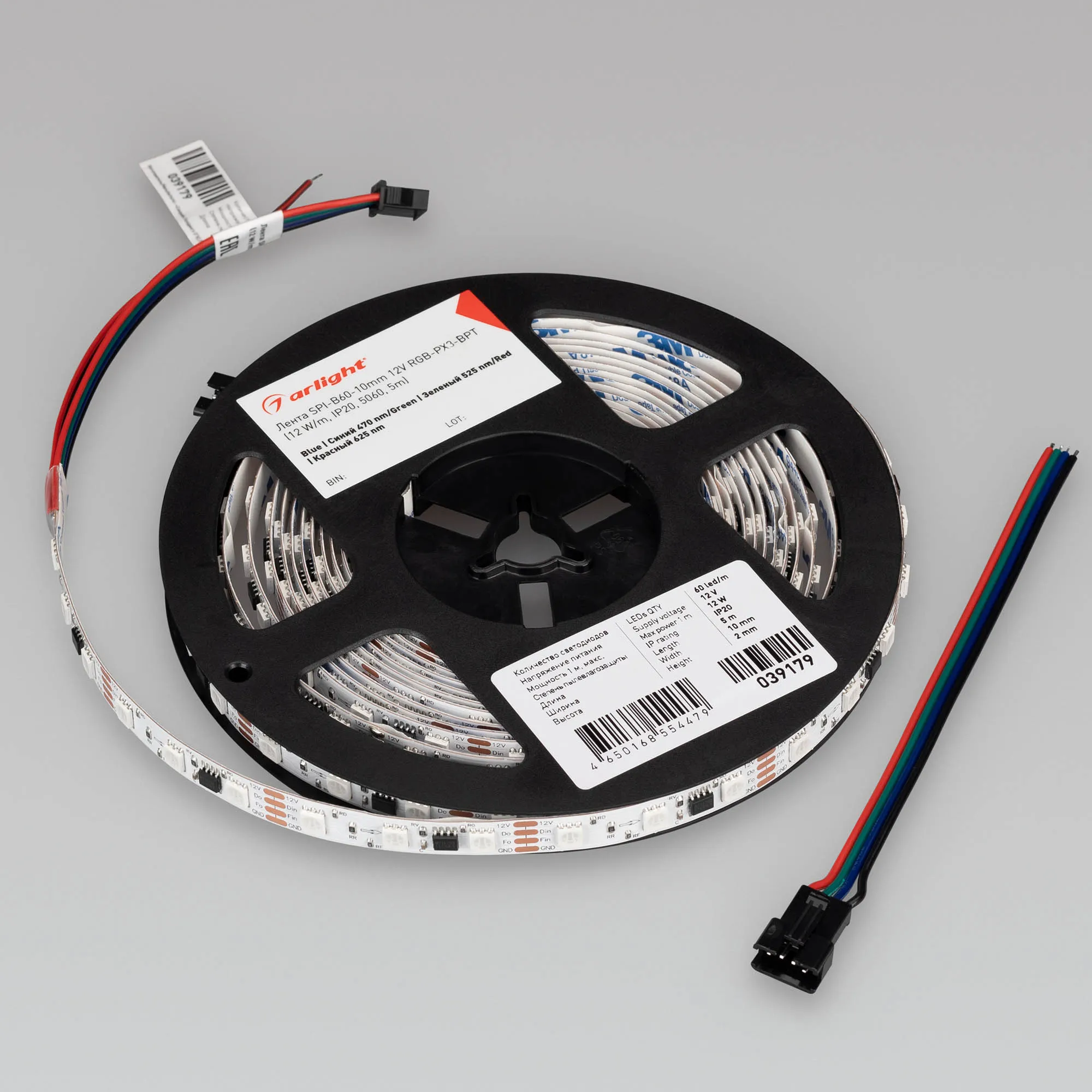 В магазине Arled Market Вы можете купить "Лента светодиодная SPI-B60-10mm 12V RGB-PX3-BPT (12 W/m, IP20, 5060, 5m) (Arlight, бегущий огонь)"