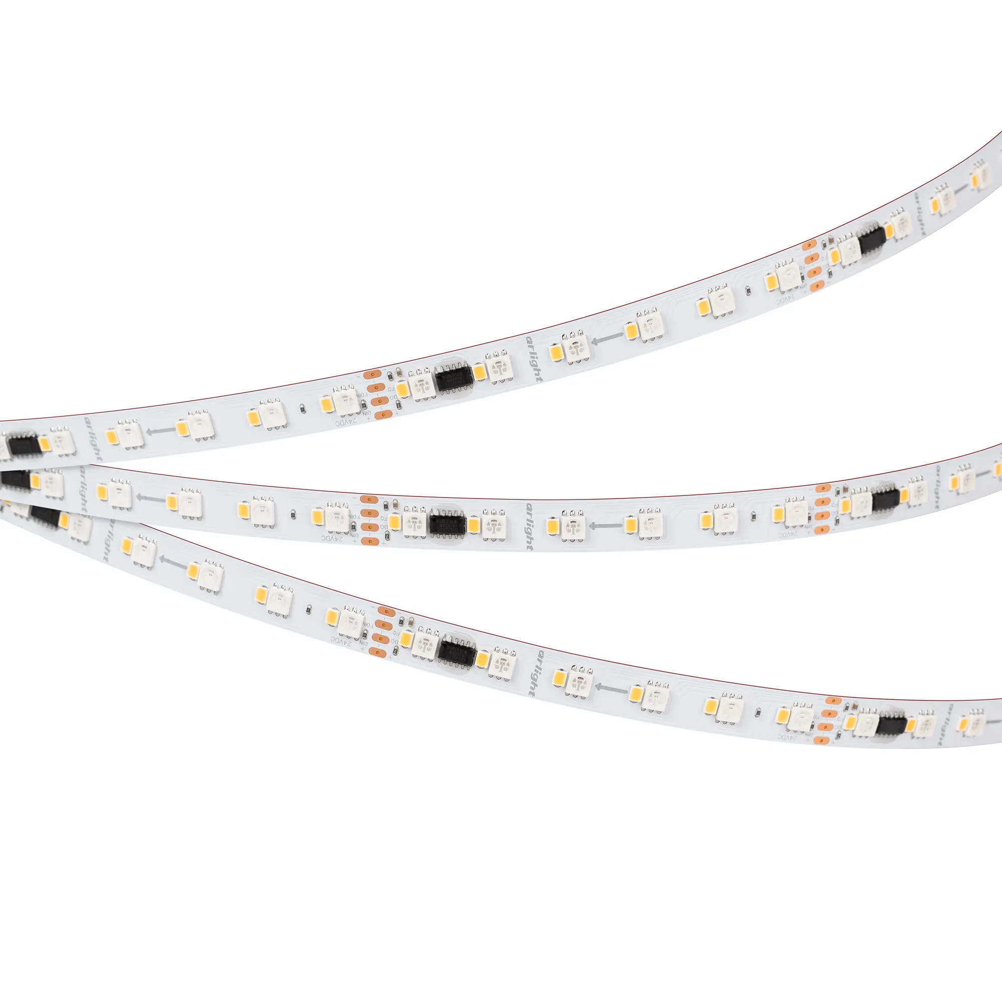 Светодиодная лента SPI серии BA120 с микросхемой WS2814. Светодиоды SMD 5060 (60 шт/м) + SMD 2835 (60 шт/м), 10 pixels на 1 м (50 pixels на 5 м), 1 pixel = 6 светодиодов RGB + 6 светодиодов White, белая плата шириной 12 мм, скотч 3М. Цвет RGB + ТЕПЛЫЙ 3000К, индекс цветопередачи CRI>95, угол 120°. Питание 24 В, мощность 16 Вт/м (80 Вт на 5 м). Размеры 5000x12x1.8 мм. Мин. отрезок 100 мм, 12 светодиодов. Цена за 1 м.