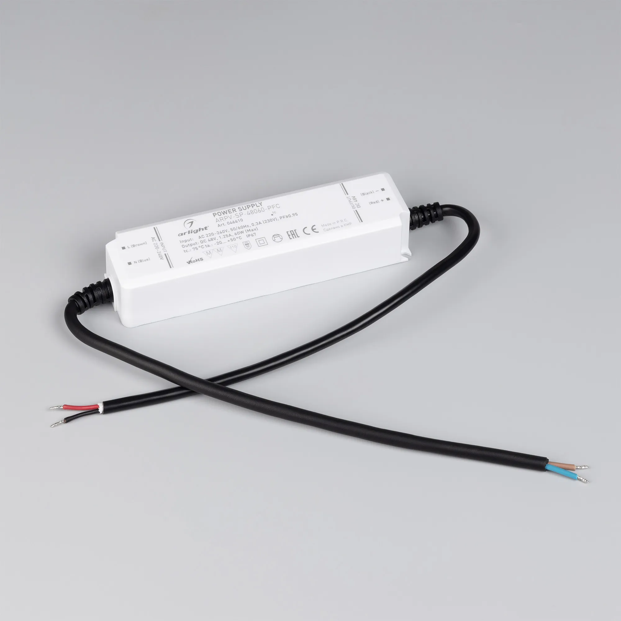 В магазине Arled Market Вы можете купить "Блок питания ARPV-SP-48060-PFC (48V, 1.25A, 60W) (Arlight, IP67 Пластик, 5 лет)"
