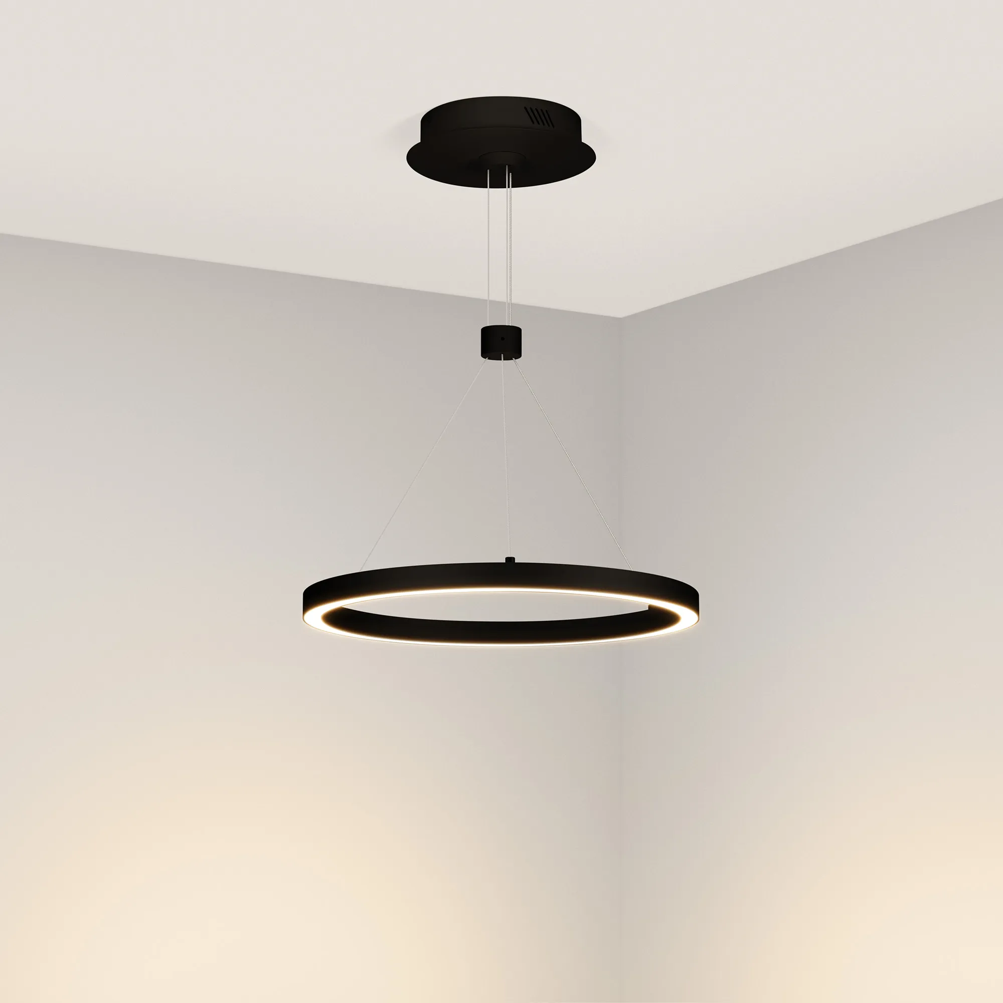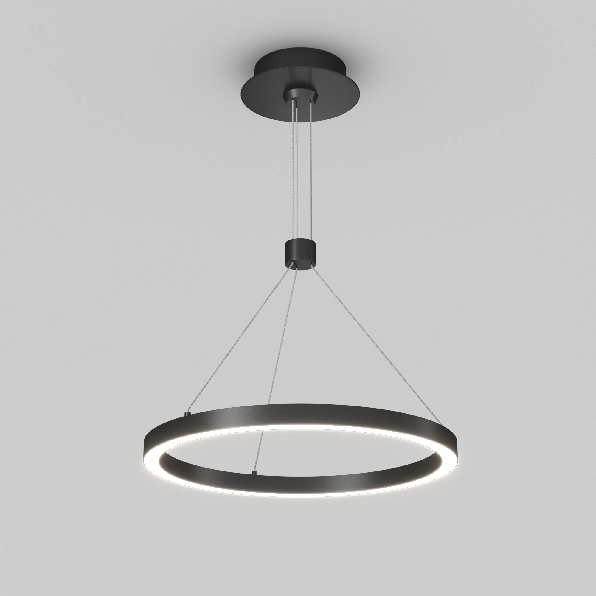 Подвесной светильник. Мощность 24 Вт, св. поток 1380 лм, 58 лм/Вт, дневной 4000 K, CRI>90, угол 120°, напряжение питания 230 В. Черный круглый корпус из алюминия, экран силикон, степень защиты IP20. Размер: диаметр 400 мм, высота 25 мм, ширина профиля 25 мм, размер чаши: диаметр 170 мм, высота 40 мм. Монтаж подвесной, длина подвеса 1200мм. Драйвер 33-40 В, 600 мА Пульсация <5%.