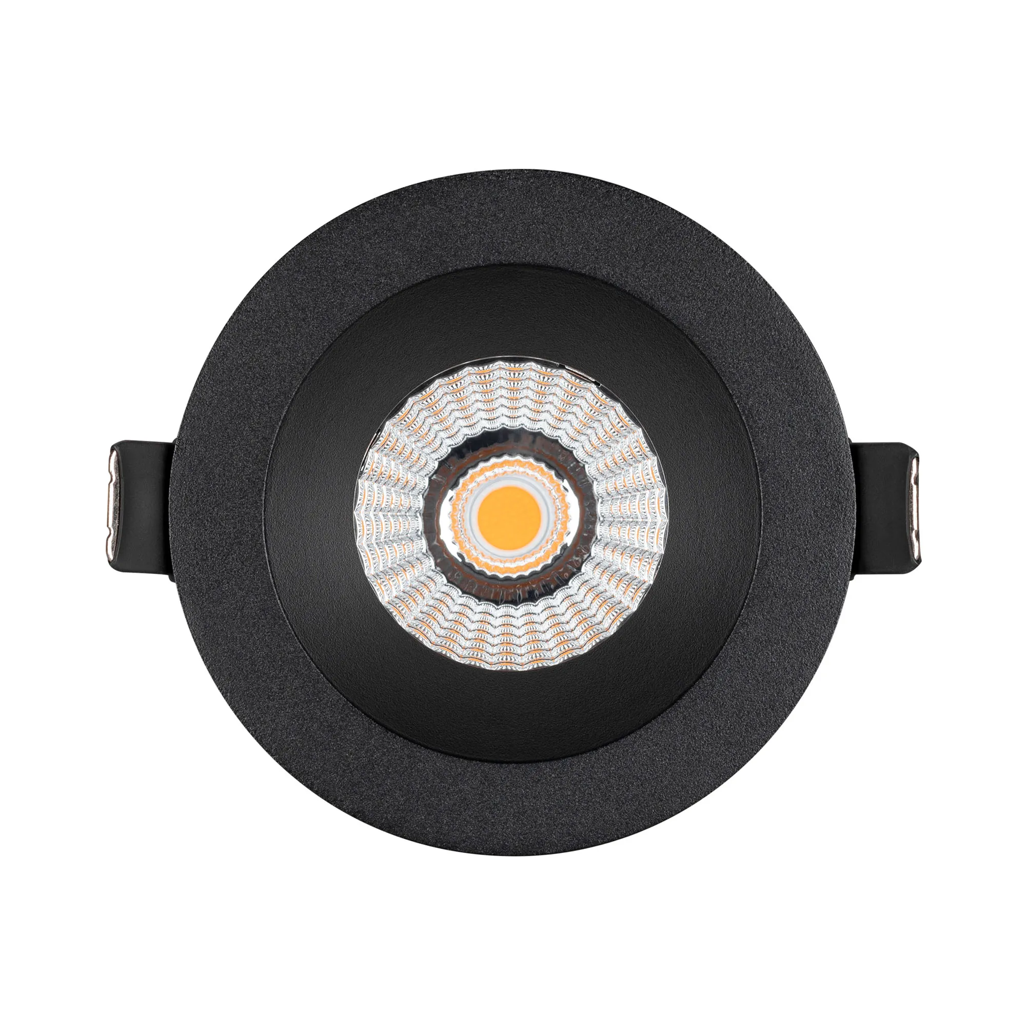 Встраиваемый светильник даунлайт. Мощность 10 Вт, св. поток 910 лм, 90 лм/Вт, дневной 4000 K, CRI>90, угол 60°, напряжение питания 230 В. Чёрный круглый корпус из алюминия, экран PMMA, степень защиты IP54. Размер: диаметр 86 мм, высота 80 мм. Монтаж встраиваемый, установочное отверстие: диаметр 80 мм. Драйвер IP54, 20-40 В, 250 мА, пульсация <1%.