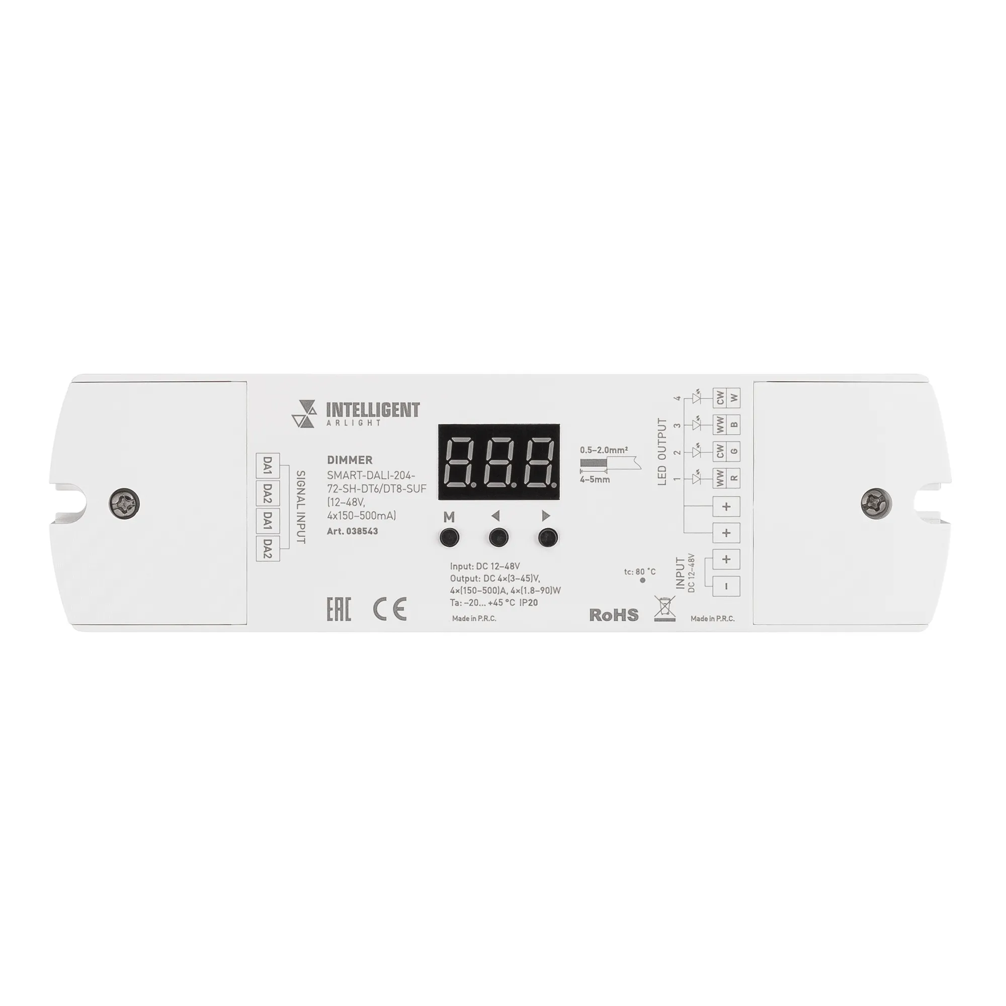 INTELLIGENT ARLIGHT Диммер SMART-DALI-204-72-SH-DT6/DT8-SUF (12-48V, 4x150-500mA) (IARL, IP20 Пластик, 5 лет)