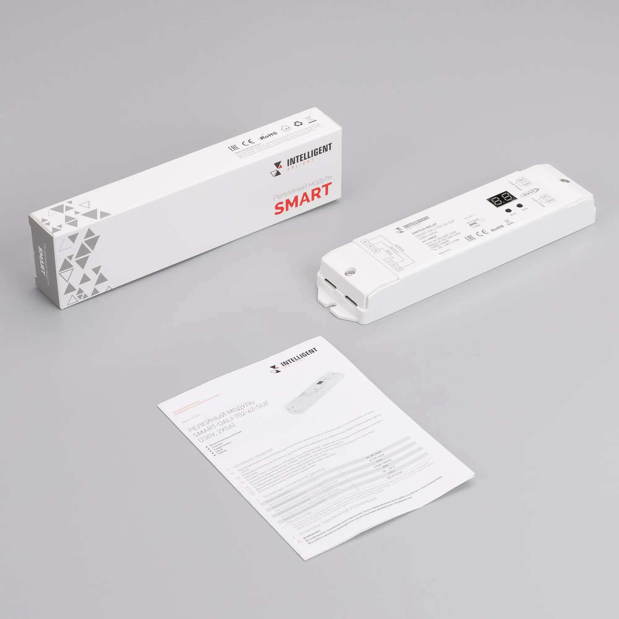 В магазине Arled Market Вы можете купить "INTELLIGENT ARLIGHT Релейный модуль SMART-DALI-702-62-SUF (230V, 2x5A) (IARL, IP20 Пластик, 5 лет)"