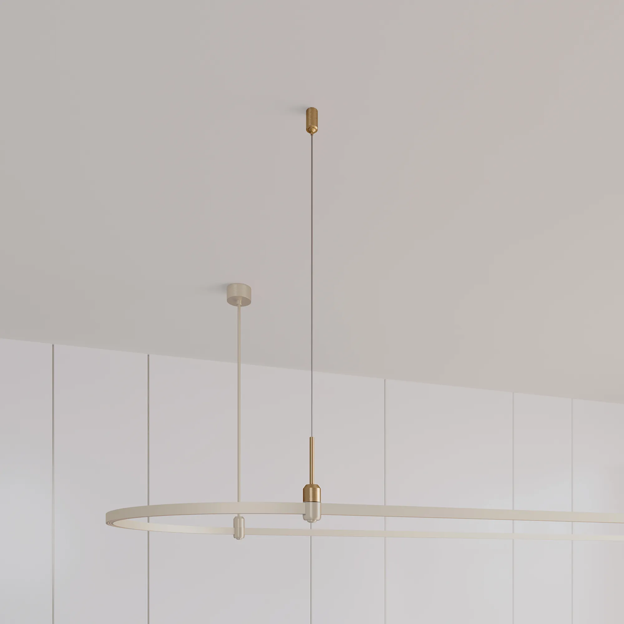 Подвес гибкий с регулируемым тросом для подвесного монтажа треков системы APRIORI. Тип крепления A. Не проводит электричество. Размер: Ø20 х 1500 х Ø38 мм. Материал алюминий, цвет светлое золото.