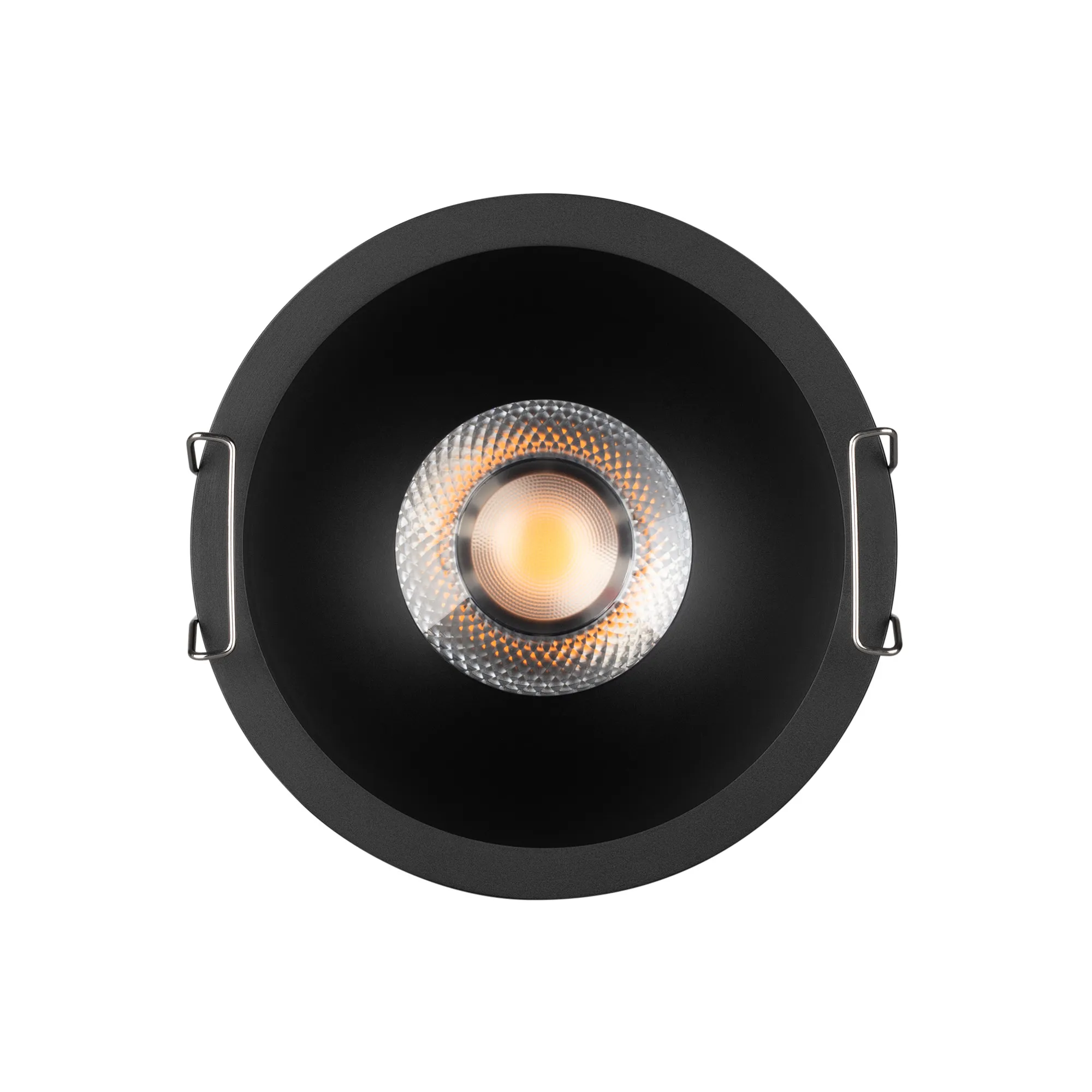 Встраиваемый светильник даунлайт. Мощность 15 Вт, св. поток 1260 лм, 84 лм/Вт, дневной 4000 K, CRI>90, угол 24°, напряжение питания 230 В. Чёрный круглый корпус из алюминия, степень защиты IP20. Размер: диаметр 106 мм, высота 63 мм. Монтаж встраиваемый, установочное отверстие: диаметр 95 мм. UGR<14. Драйвер 27-40 В, 350 мА, пульсация <2%.