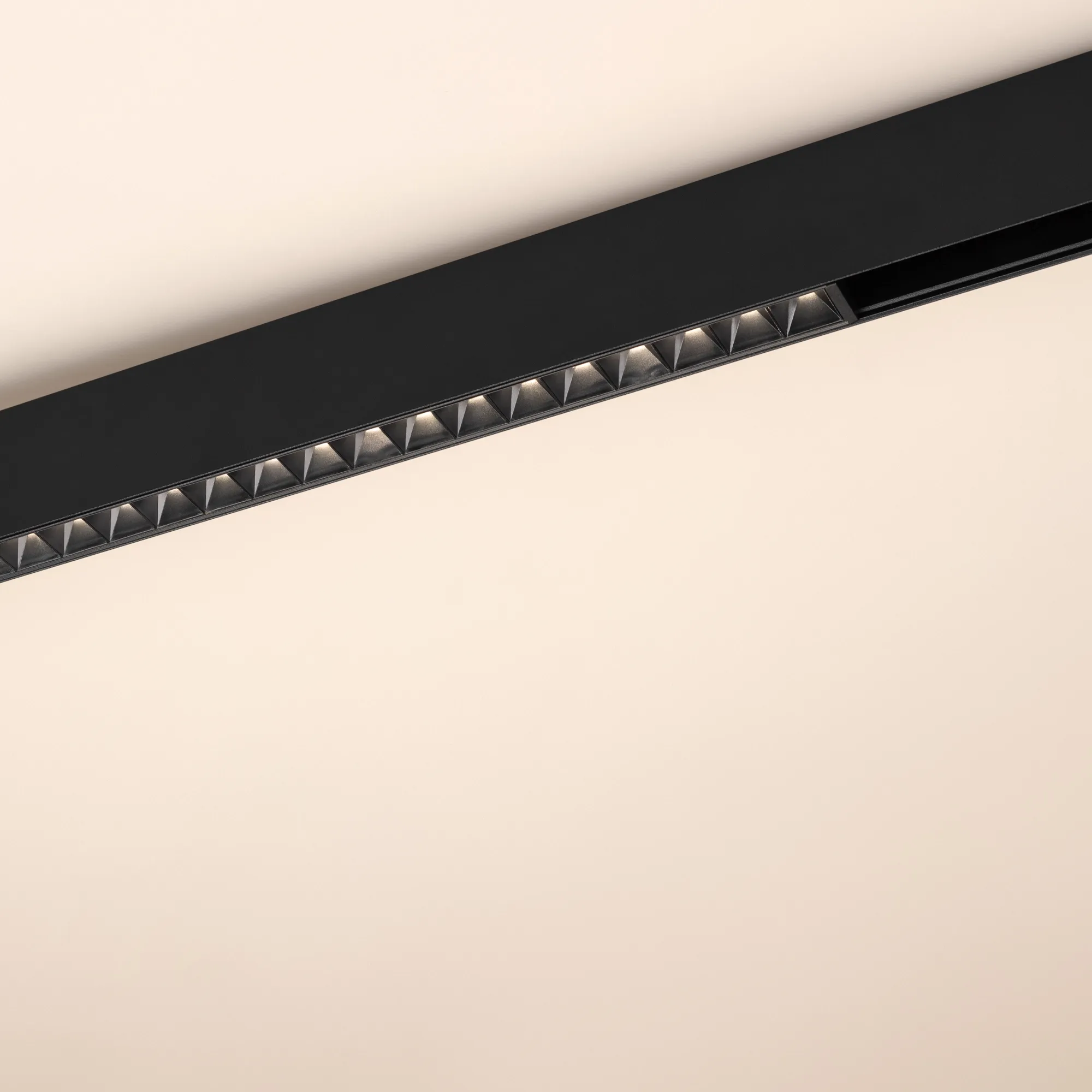 Светильник для магнитных треков MAG-ORIENT шириной 26 мм. Мощность 16 Вт, св. поток 720 лм, 45 лм/Вт, теплый 2700 K, CRI>90, угол 24°, напряжение питания 48 В. Черный прямоугольный корпус из металл, экран поликарбонат, степень защиты IP20. Размер: длина 462 мм, ширина 22 мм, высота 42 мм. Монтаж на трек MAG-ORIENT. Пульсация <1%.