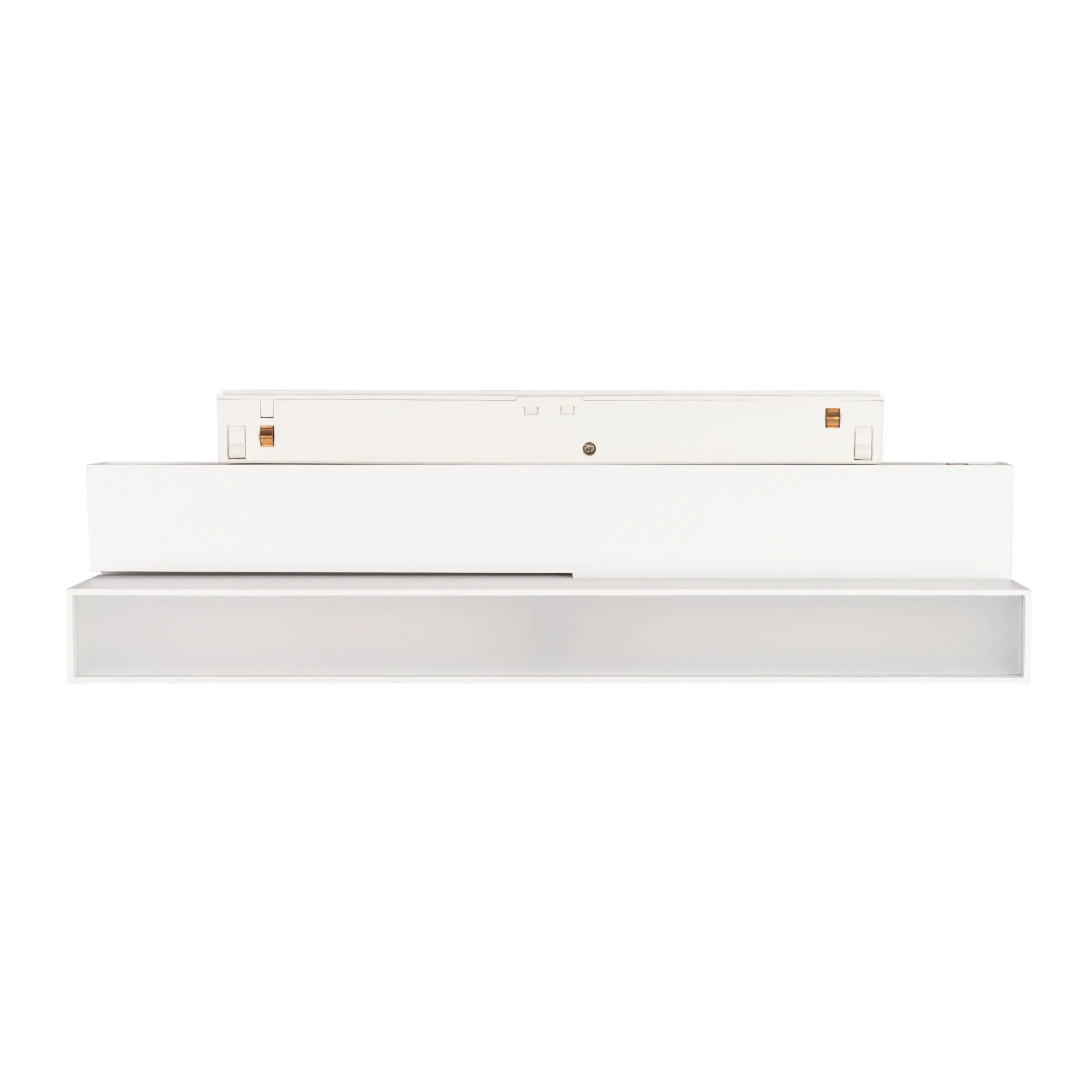 Светильник для магнитных треков MAG-ORIENT шириной 26 мм. Мощность 12 Вт, св. поток 740 лм, 60 лм/Вт, теплый 2700 K, CRI>90, угол 80°, напряжение питания 48 В. Белый прямоугольный корпус из металл, экран поликарбонат, степень защиты IP20. Размер: длина 232 мм, ширина 23 мм, высота 99 мм. Монтаж на трек MAG-ORIENT. Пульсация <1%.