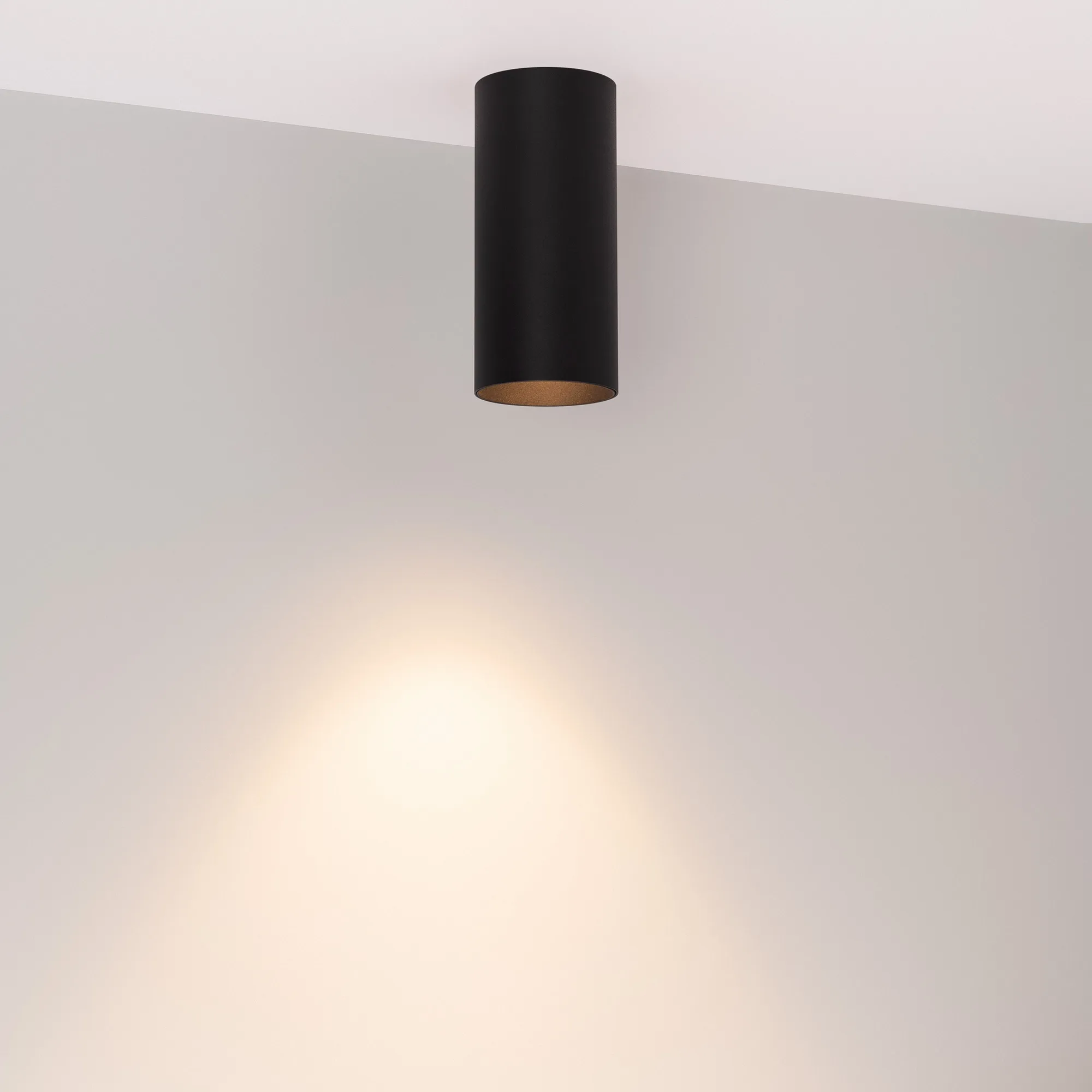 Накладной светильник. Мощность 9 Вт, св. поток 560 лм, 62 лм/Вт, теплый 3000 K, CRI>90, угол 60°, напряжение питания 230 В. Чёрный круглый корпус из алюминия, экран PMMA, степень защиты IP40. Размер: диаметр 50 мм, высота 110 мм. Монтаж накладной. Встроенный драйвер 27-40 В, 200 мА, пульсация <1 %.