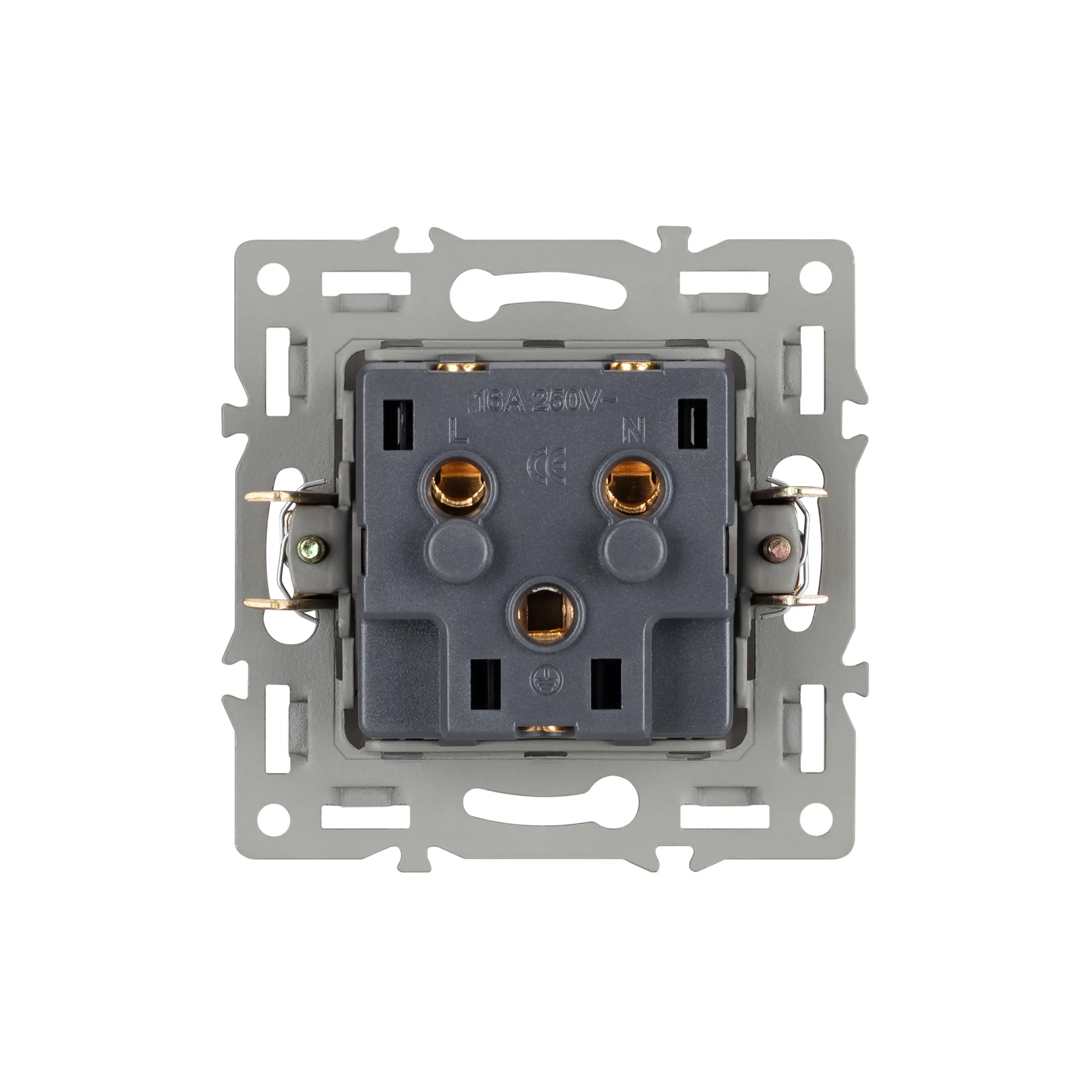 Механизм розетки с заземлением 1 пост, с суппортом из алюминия. Цвет - черный. Степень пылевлагозащиты - IP20.