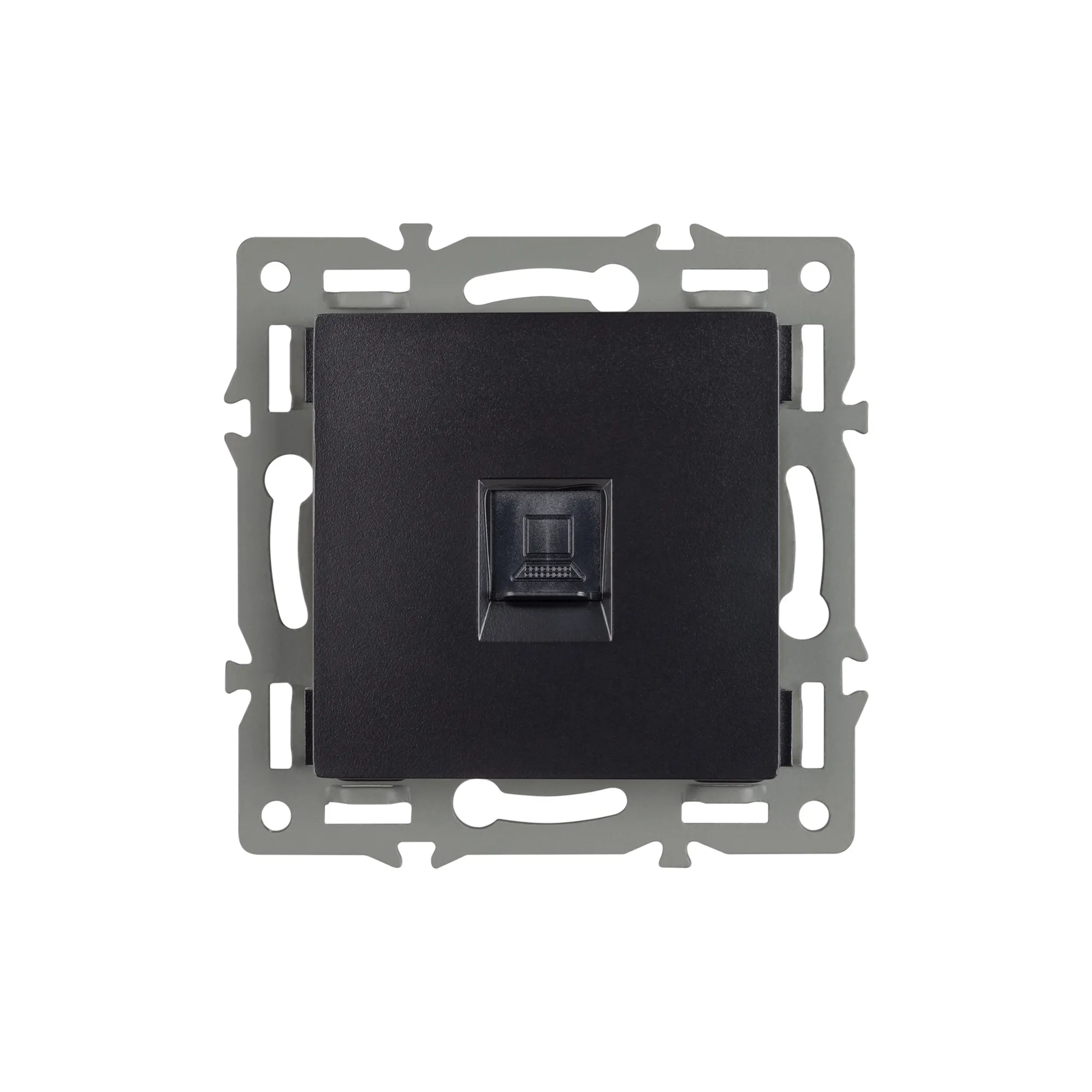 Механизм компьютерной розетки на 1 пост 6-й категории (CAT6), с суппортом из алюминия. Цвет - черный. Степень пылевлагозащиты - IP20.