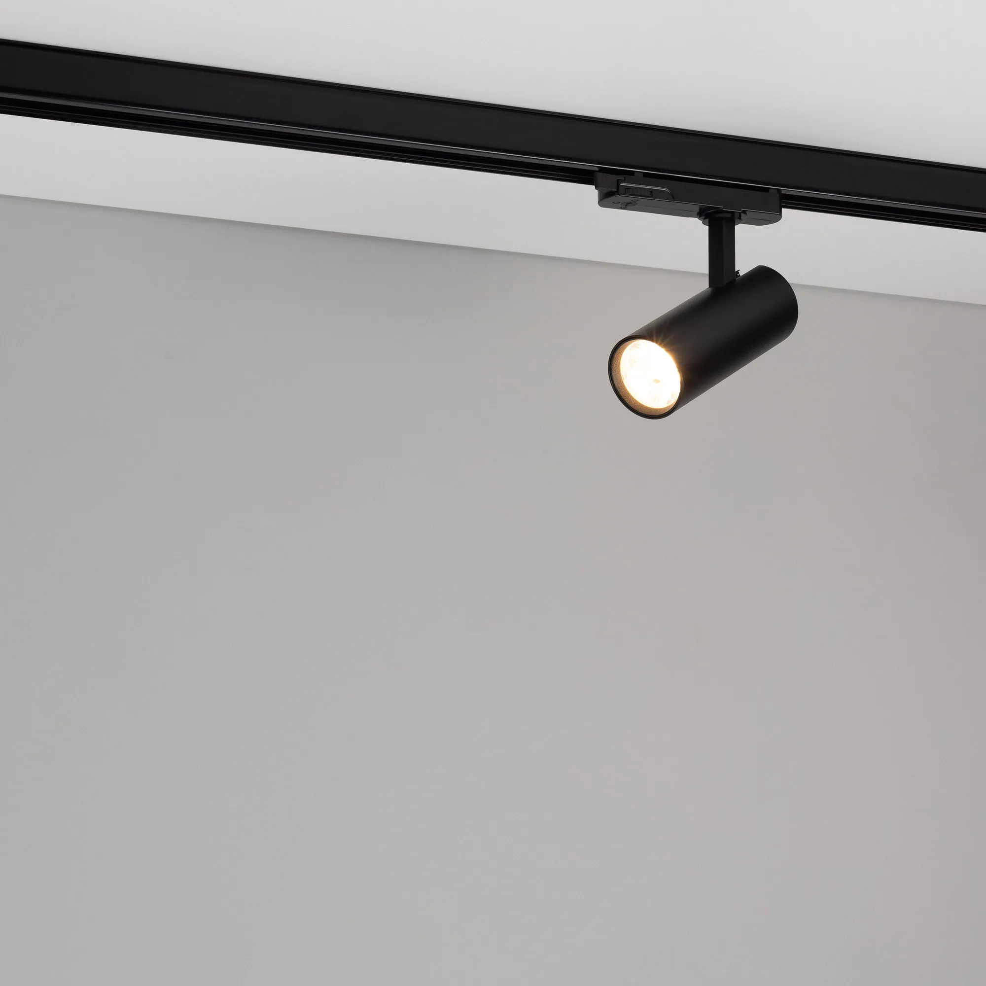 Светильник для треков/шин 4 провода. Мощность 10 Вт, св. поток без решетки honeycomb 1000 лм, 100 лм/Вт, с решеткой honeycomb 660 лм, 66 лм/Вт, теплый 3000 K, CRI>90, угол 24°, напряжение питания 230 В. Черный круглый корпус из алюминия, материал линзы PMMA, степень защиты IP20. Размер: диаметр 55 мм, длина световой части 141 мм. Монтаж на трек 3-фазный. Драйвер встроенный 25-42 В, 250мА., пульсация <5%.