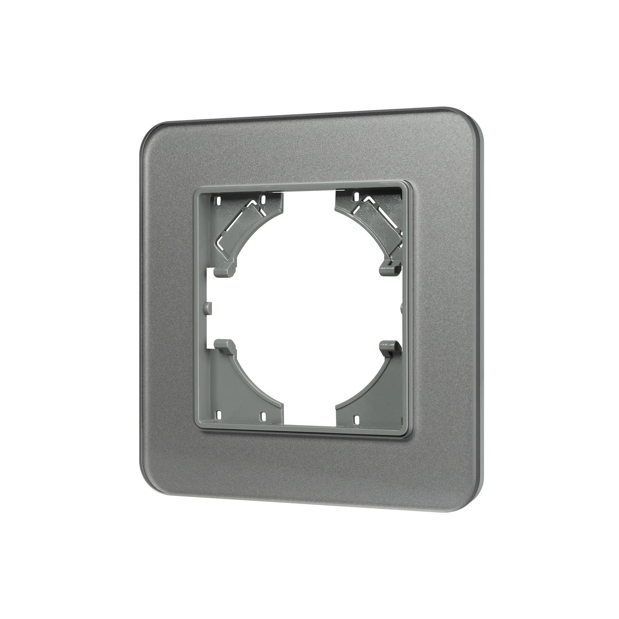Рамка стеклянная на 1 пост, под встраиваемый механизм. Цвет - серый. Уровень герметичности IP20. Ориентация монтажа - горизонтальная (основным ориентиром служат посадочные выступы для накладки механизма).