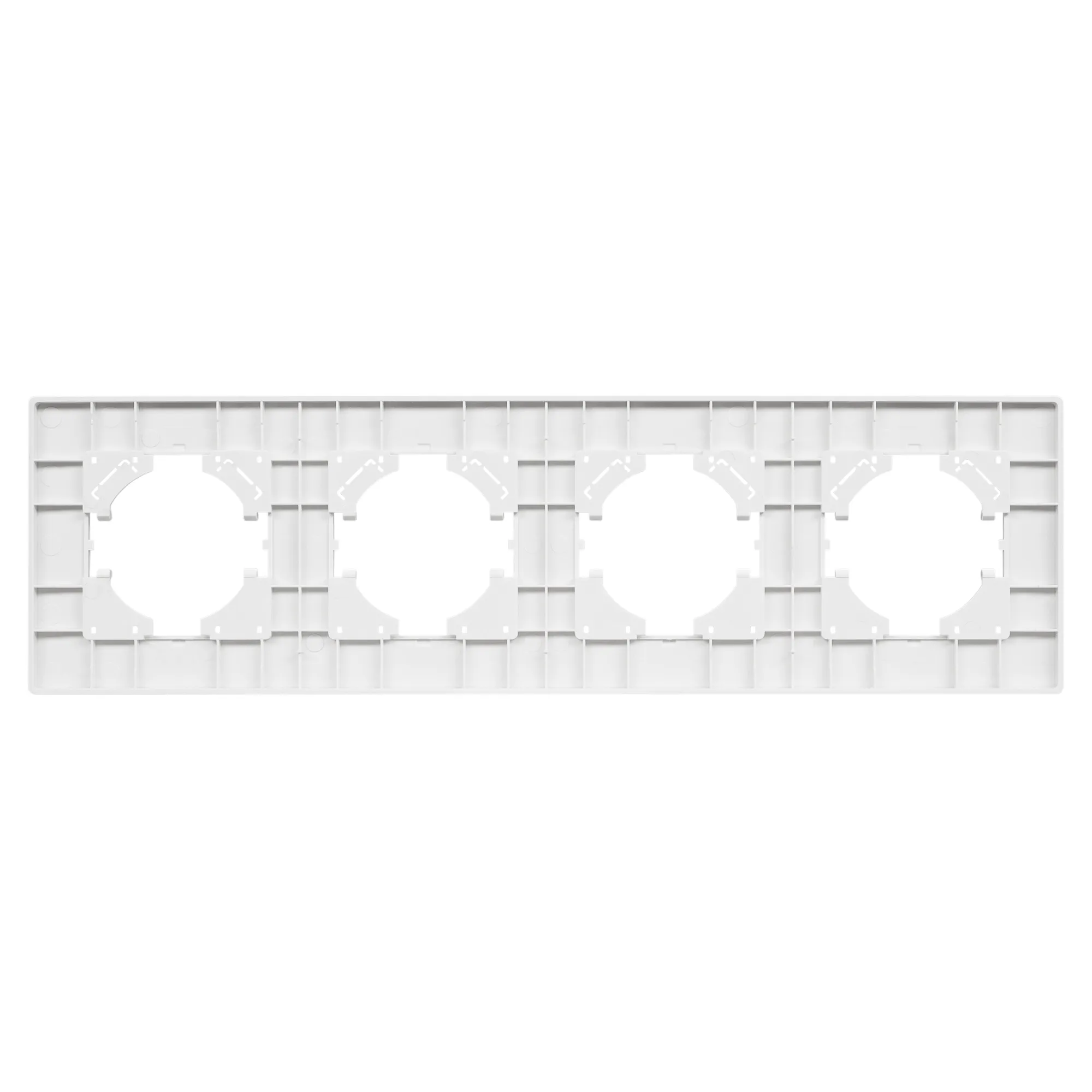 Рамка пластиковая на 4 поста, под встраиваемый механизм. Цвет - серый. Уровень герметичности IP20. Ориентация монтажа - горизонтальная (основным ориентиром служат посадочные выступы для накладки механизма).