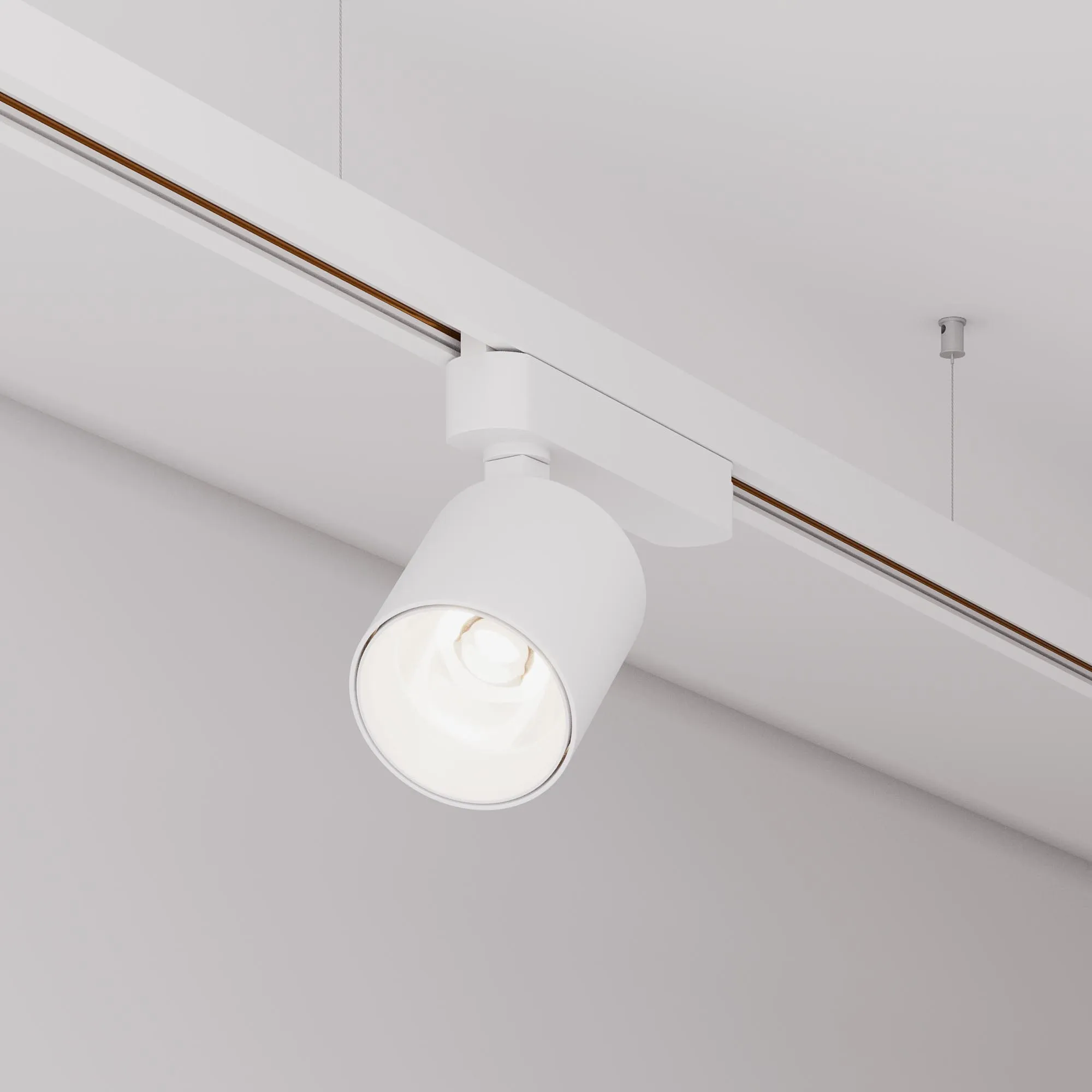Светильник для однофазных треков, 16 Вт. Цвет свечения ДНЕВНОЙ 4000K, световой поток 1550 лм, угол 50°, CRI>90. Корпус круглый, металл, цвет белый, IP20. Размеры Ø74x69,6 мм. Монтаж на трек 1-фазный. Входное напряжение AC220-240V, мощность 20 Вт. Драйвер встроенный (25-40V, 500 mA).Пульсация <1%.