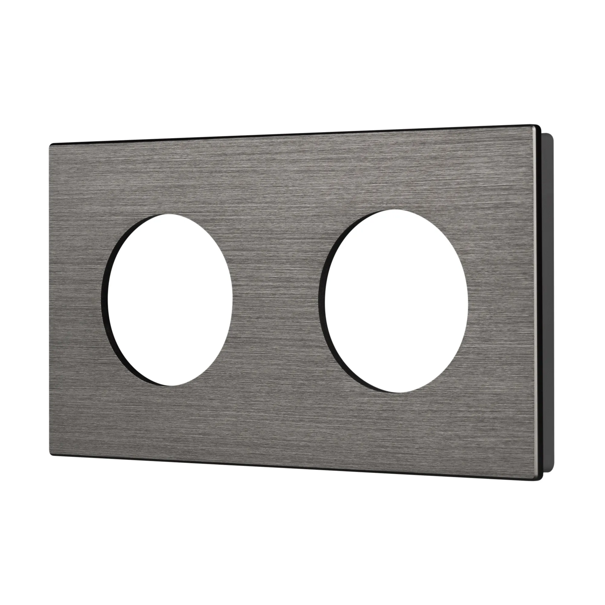 Рамка алюминиевая на 2 поста, под встраиваемый механизм. Вырез под функциональную часть - круг. Цвет - серый. Ориентации монтажа - горизонтальная и вертикальная.
