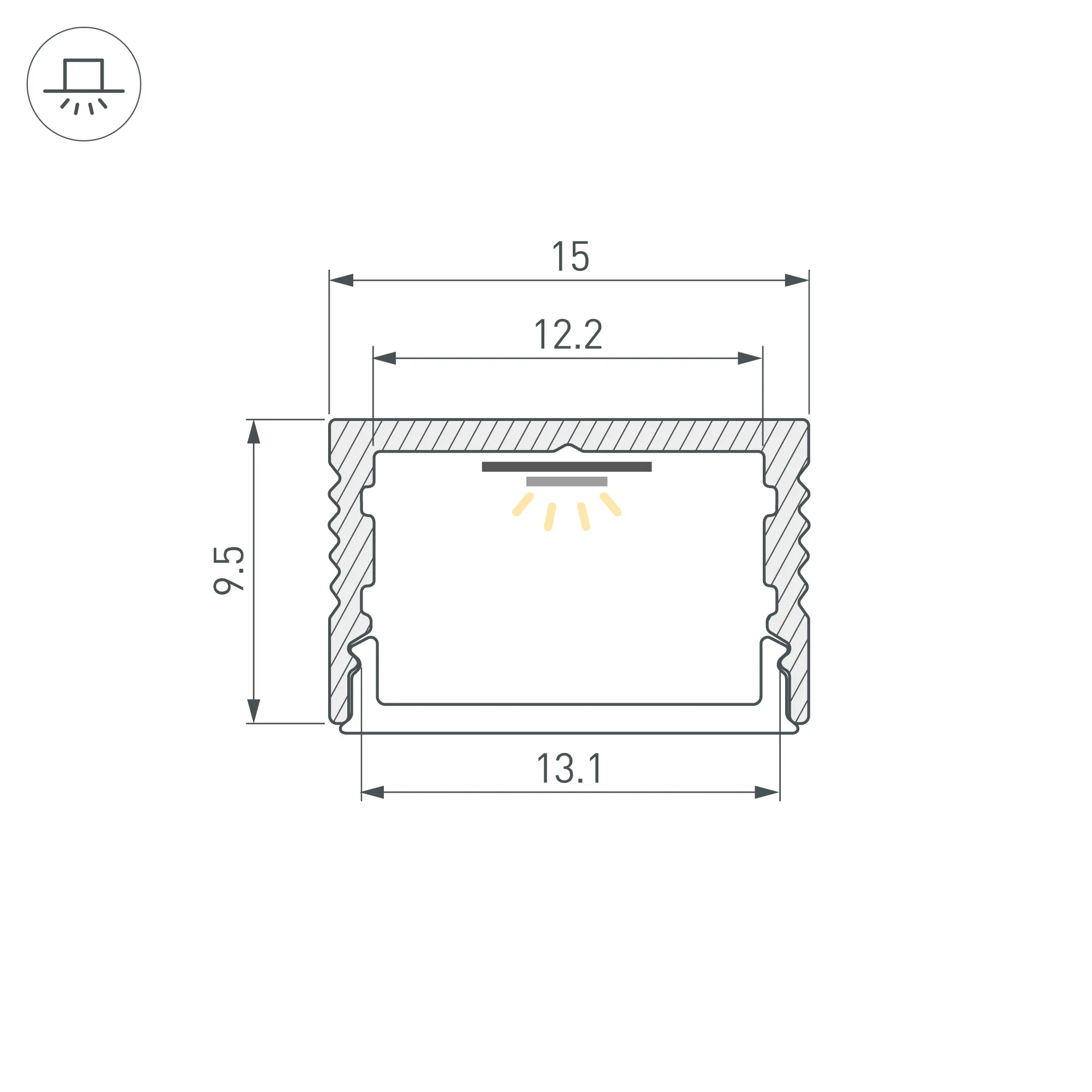 Алюминиевый анодированный профиль для светодиодных лент и линеек. Габаритные размеры (L×W×H): 2000x15x9,5 мм. Ширина площадки для ленты 12,2 мм. Экраны, заглушки и другие аксессуары приобретаются отдельно. Цена за 1 метр.