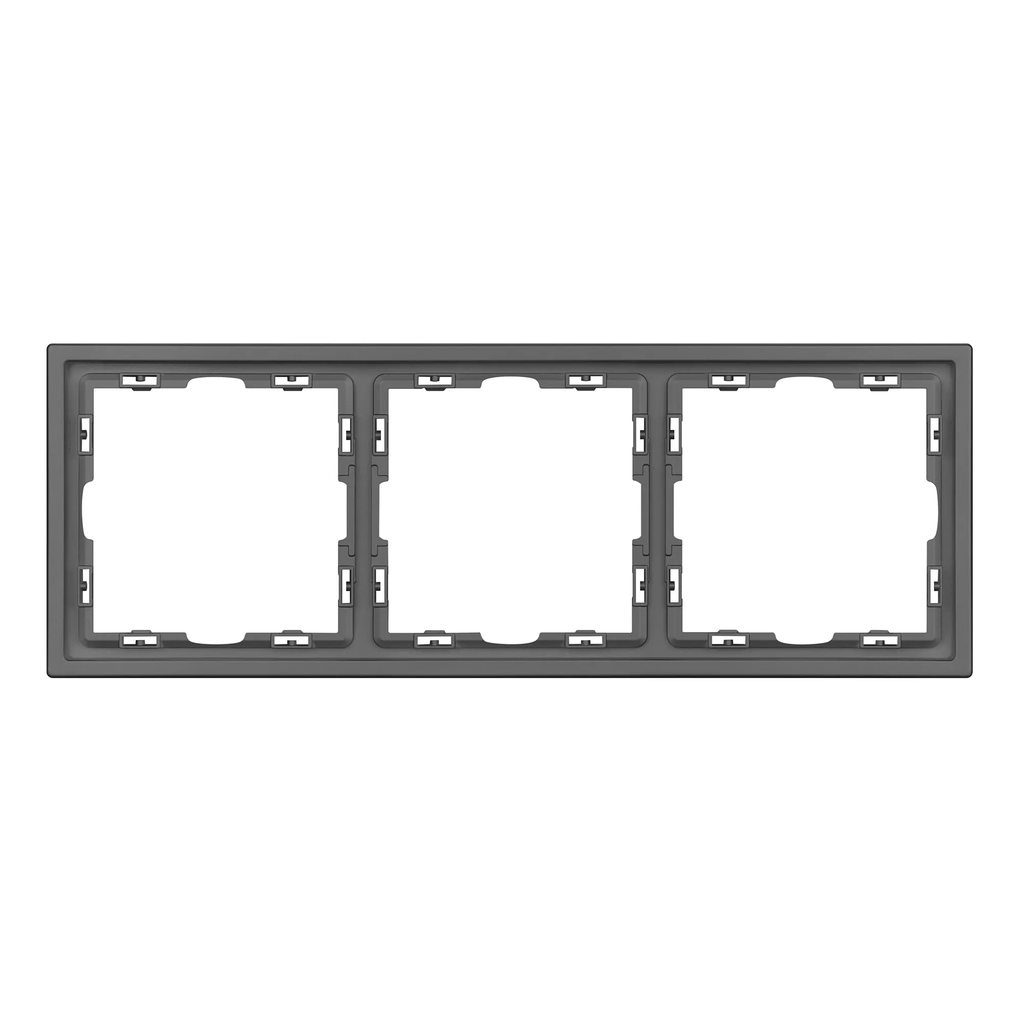 Рамка пластиковая на 3 поста, под встраиваемый механизм. Цвет - серый базальт, с Soft-Touch покрытием. Среднего уровня герметичности IP20. Ориентация монтажа горизонтальная.