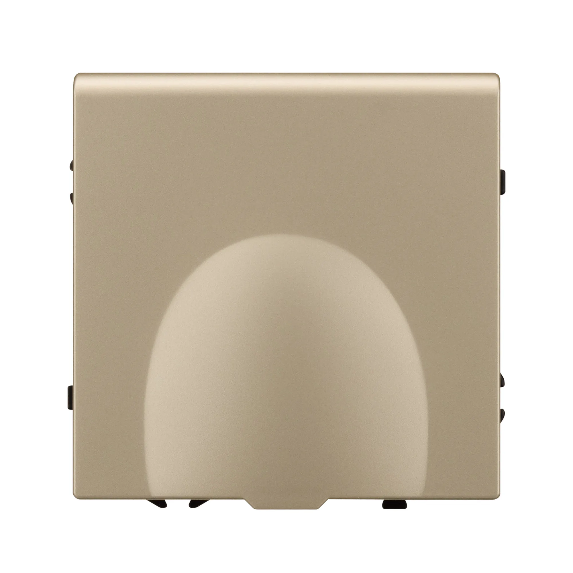 Механизм розетки с заземлением и влагозащитной крышкой на 1 пост. Цвет - золотой песок, с Soft-Touch покрытием. Без фронтальной рамки. Уровень пылевлагозащиты IP44. Розетка устанавливается в стандартный подрозетник круглого сечения диаметром 60мм.