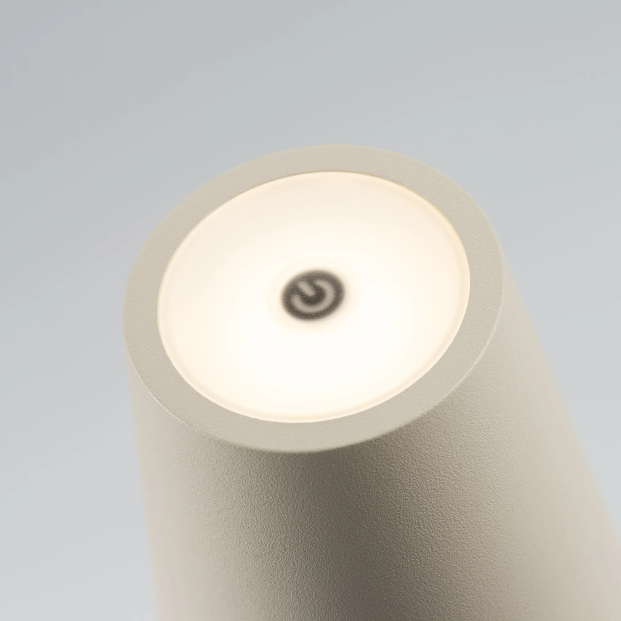 Настольный светильник со встроенным аккумулятором 1.5Вт, алюминиевый корпус, цвет песочный. Цвет ТЕПЛЫЙ БЕЛЫЙ 2200-2700-3000K, св.поток 110-130 лм, CRI(Ra)>80, угол 90°. Размер Ф75x250мм. IP54. Зарядка от сети переменного тока AC220-240V. Тип встроенного аккумулятора 1500мАч Li-ion, напряжение батареи 3.7V