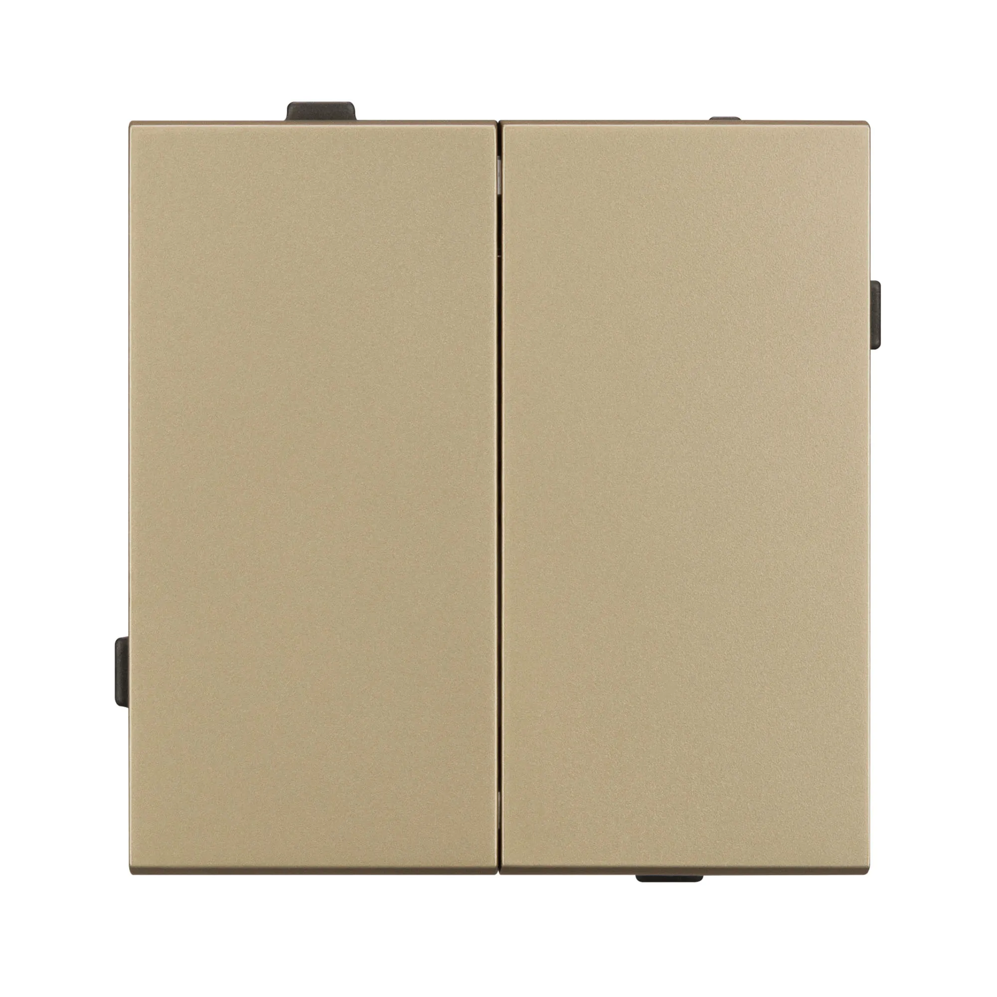 Механизм выключателя света клавишный на 1 пост 2 клавиши (непроходной). Цвет - золотой, с Soft-Touch покрытием. Без фронтальной рамки. Уровень пылевлагозащиты IP20. Выключатель устанавливается в стандартный круглый подрозетник круглого сечения диаметром 60мм.