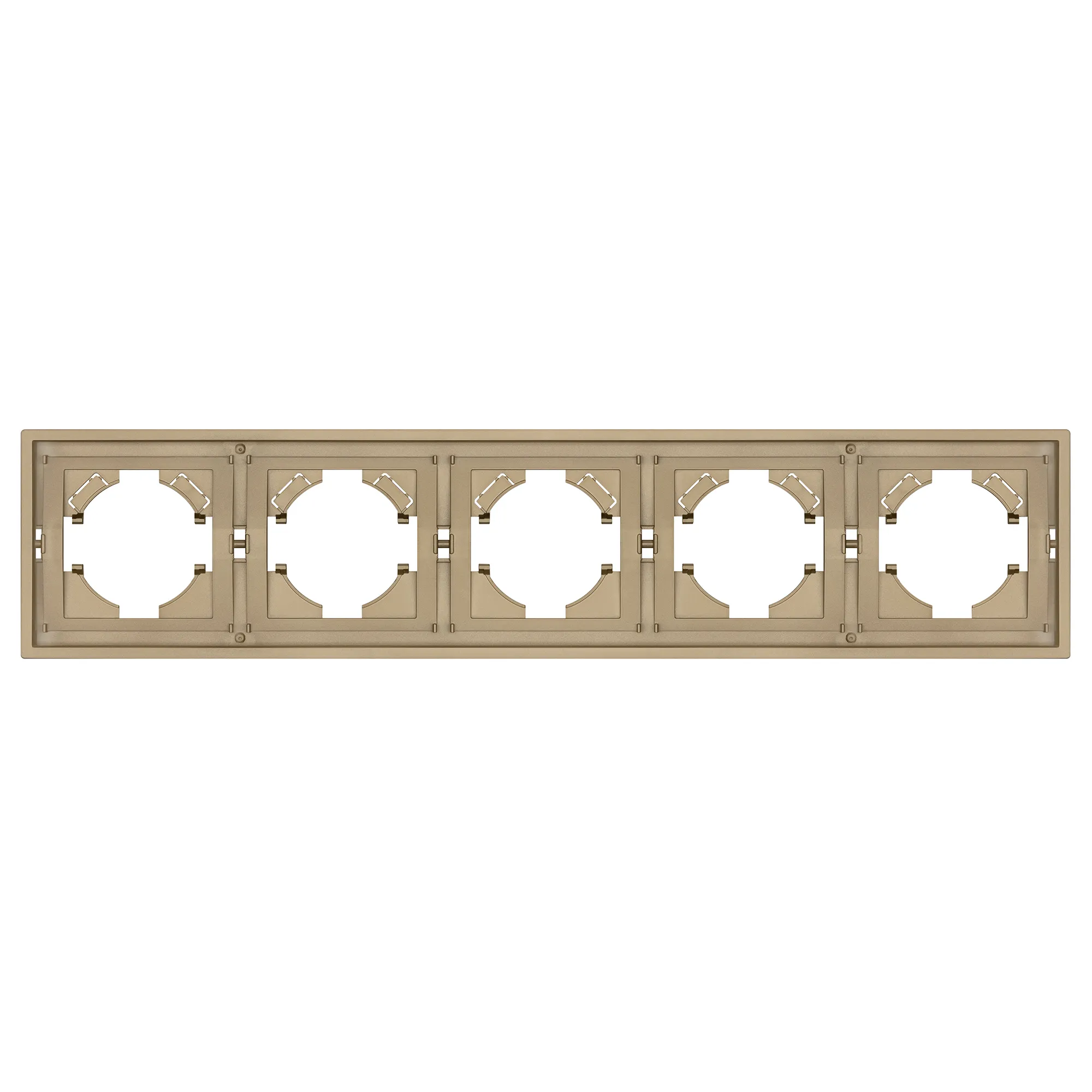 Рамка пластиковая на 5 постов, под встраиваемый механизм. Цвет - матовый песочный, с Soft-Touch покрытием. Уровень герметичности IP20. Ориентация монтажа горизонтальная.